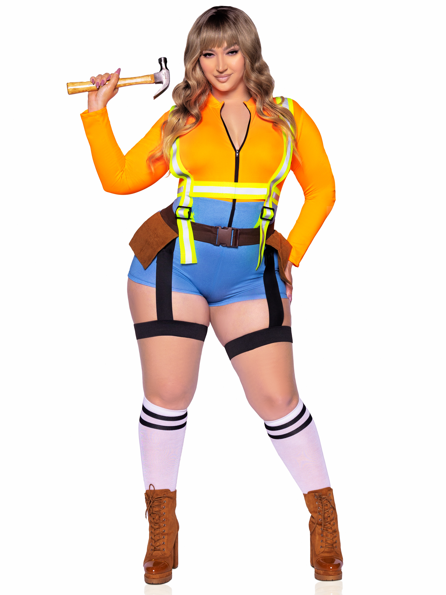 2 PC Nailed It Construction Worker, includes zip up romper and reflective garter harness with tool pockets. No returns or exchanges.