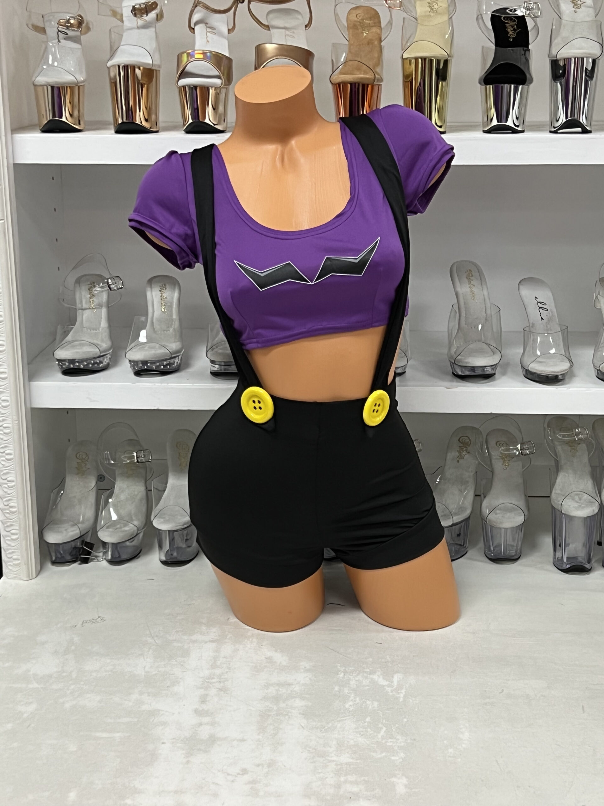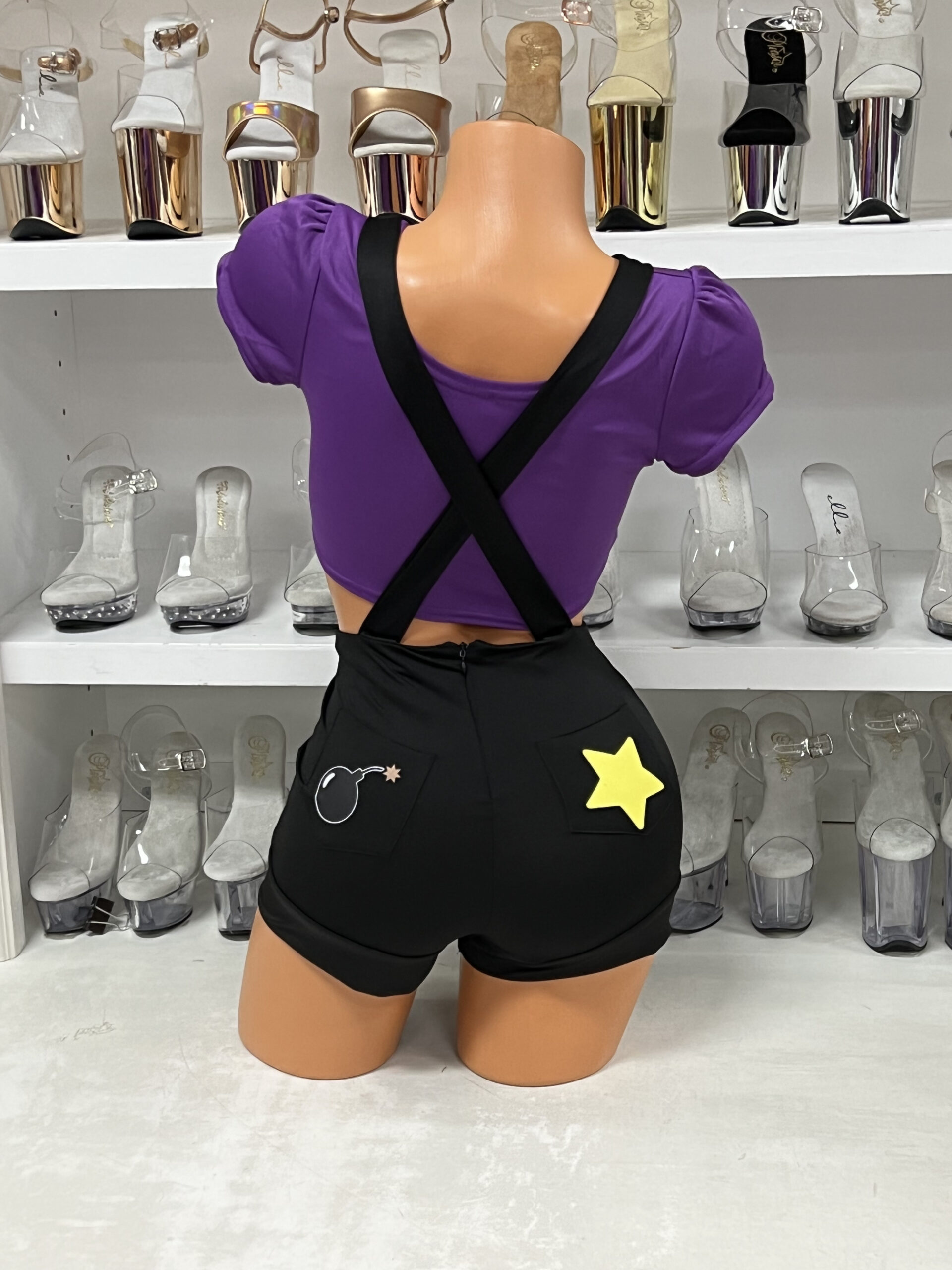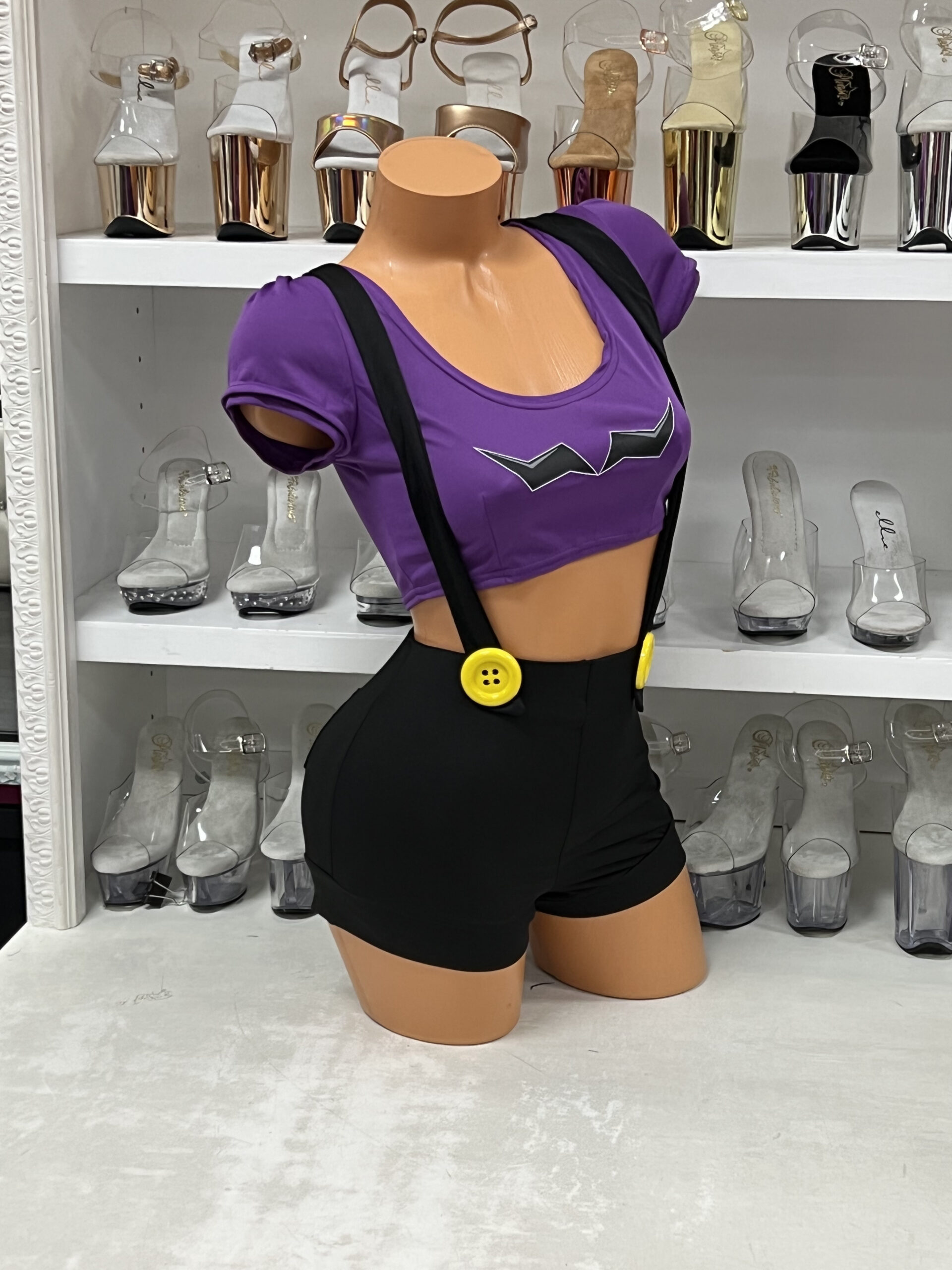 3 PC Gamer Baddie, includes character crop top, suspender shorts with icon accents, and hat. No returns or exchanges.