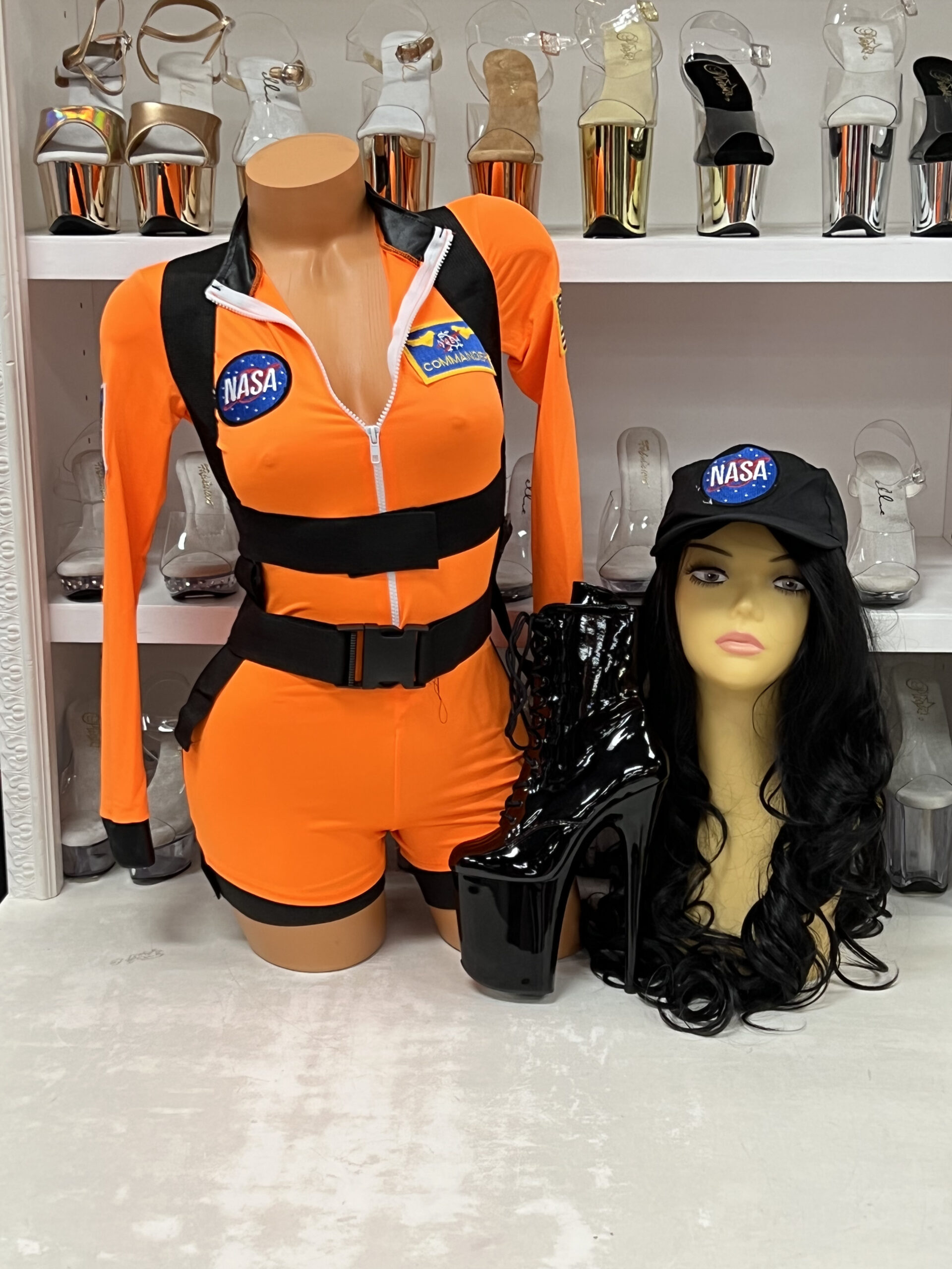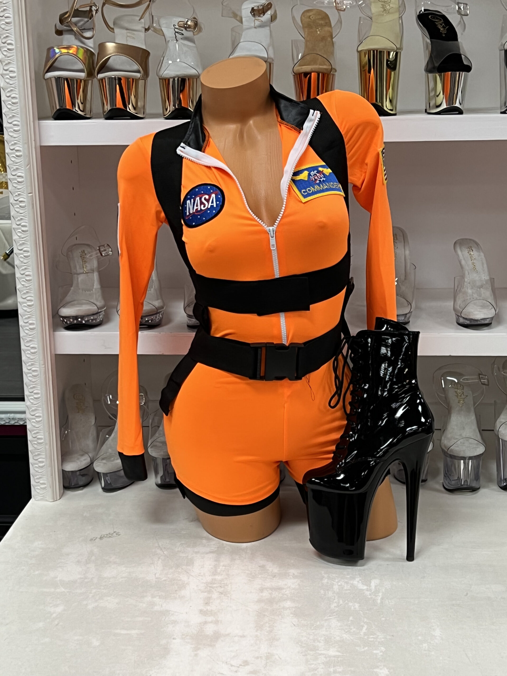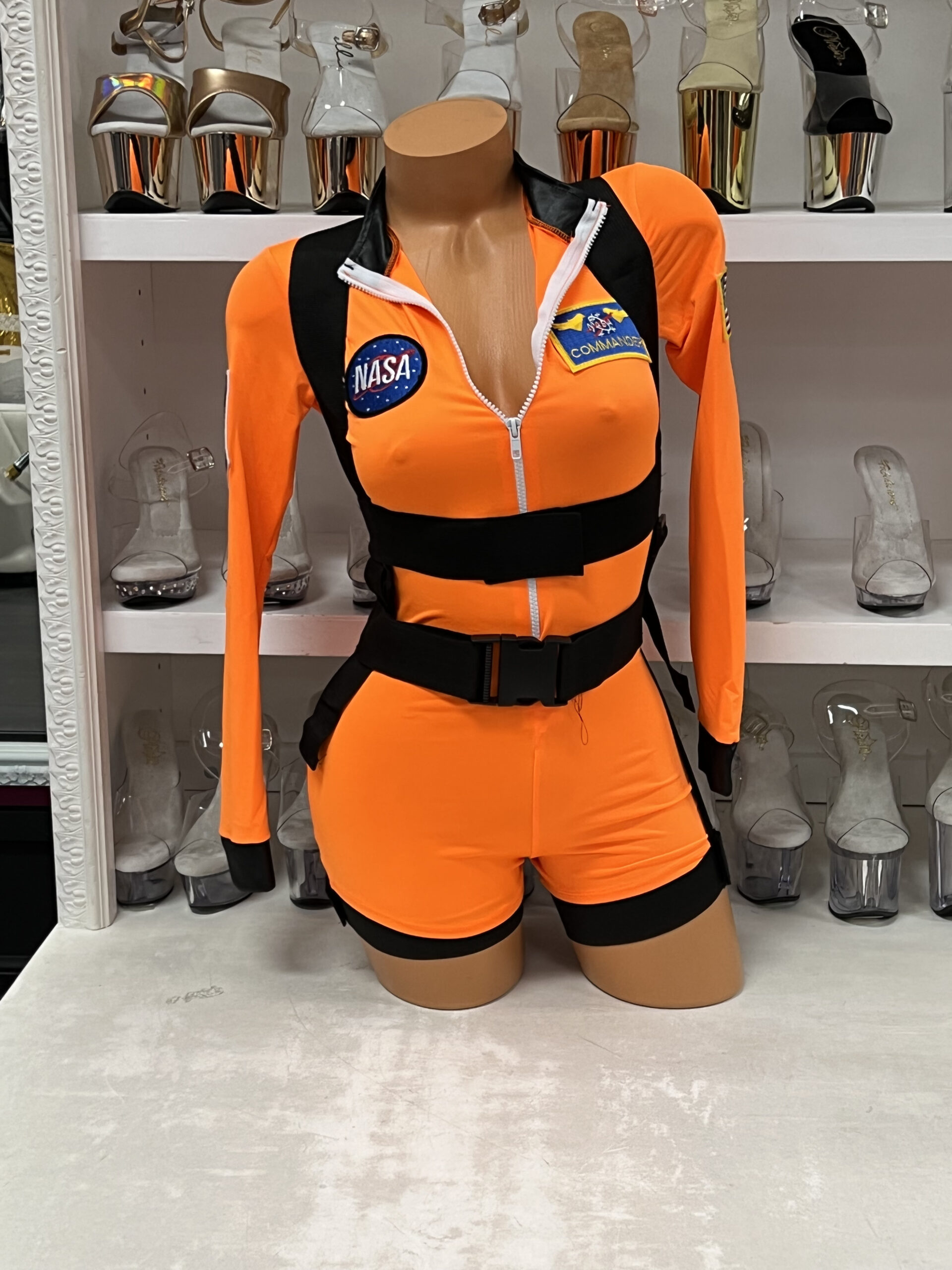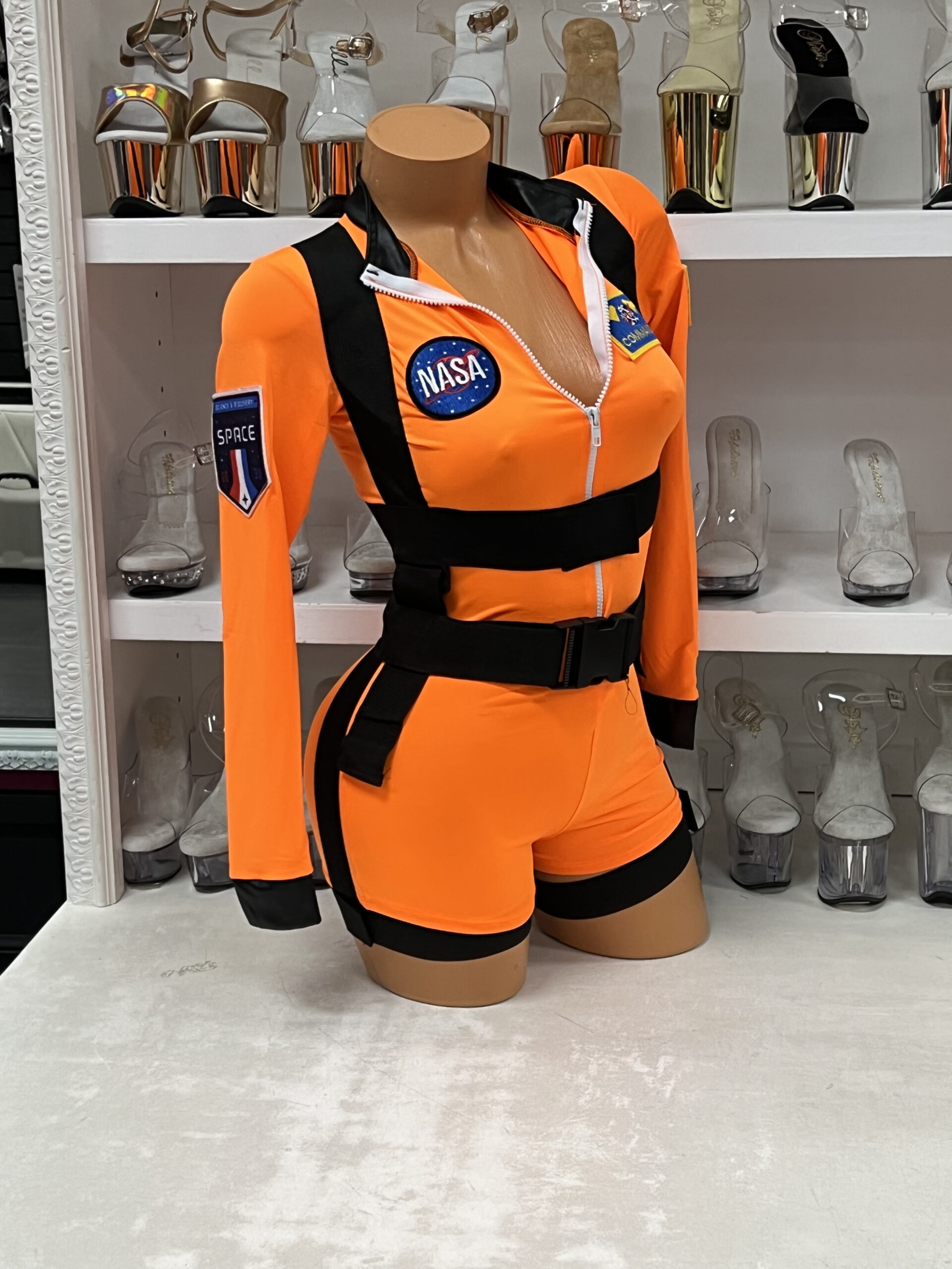 3 PC Space Commander, includes zip-up romper with badge accents, garter harness, and matching hat. No returns or exchanges.