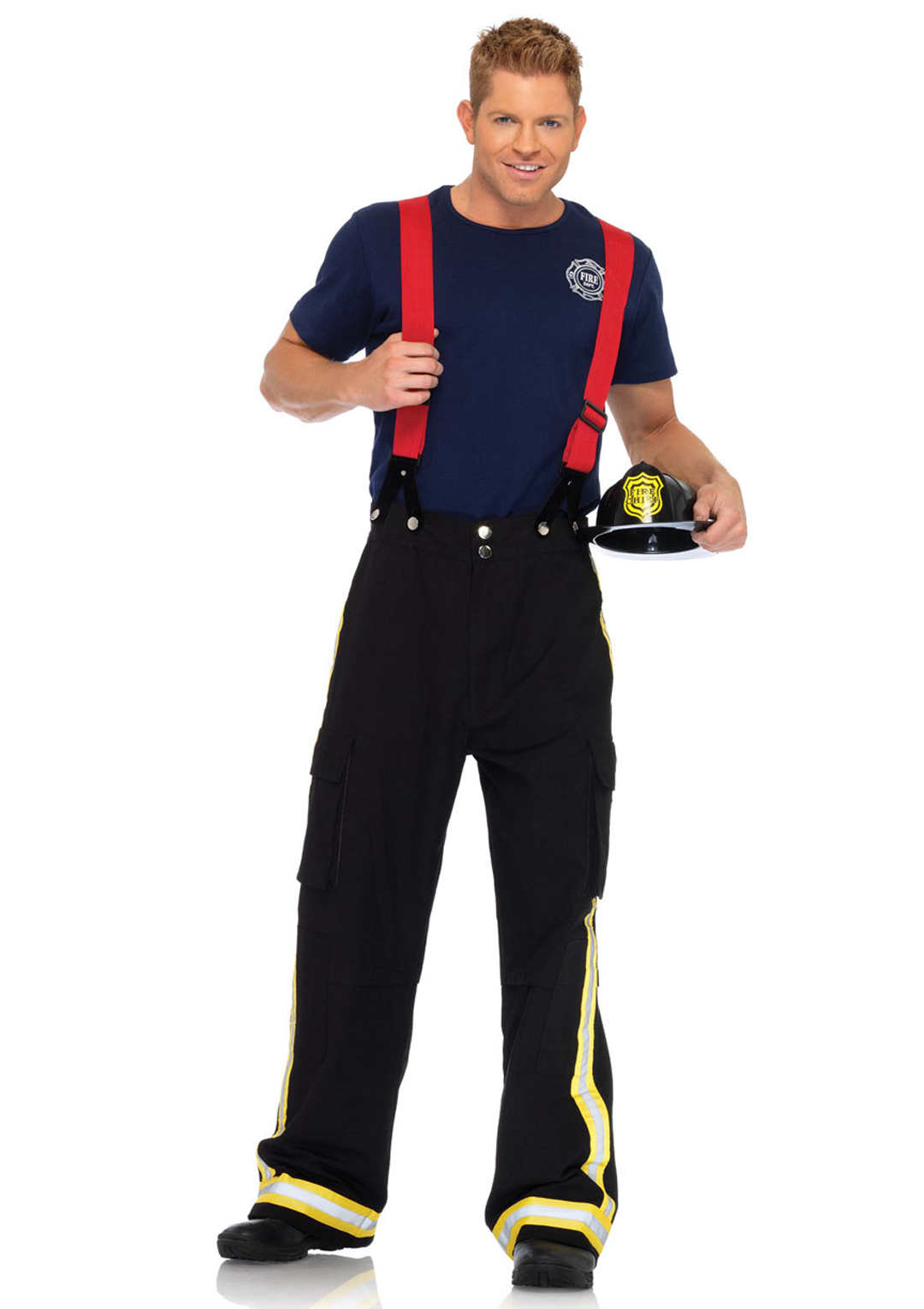 3PC.Fire Captain, pants w/reflective trim, t-shirt, suspenders. No returns or exchanges.