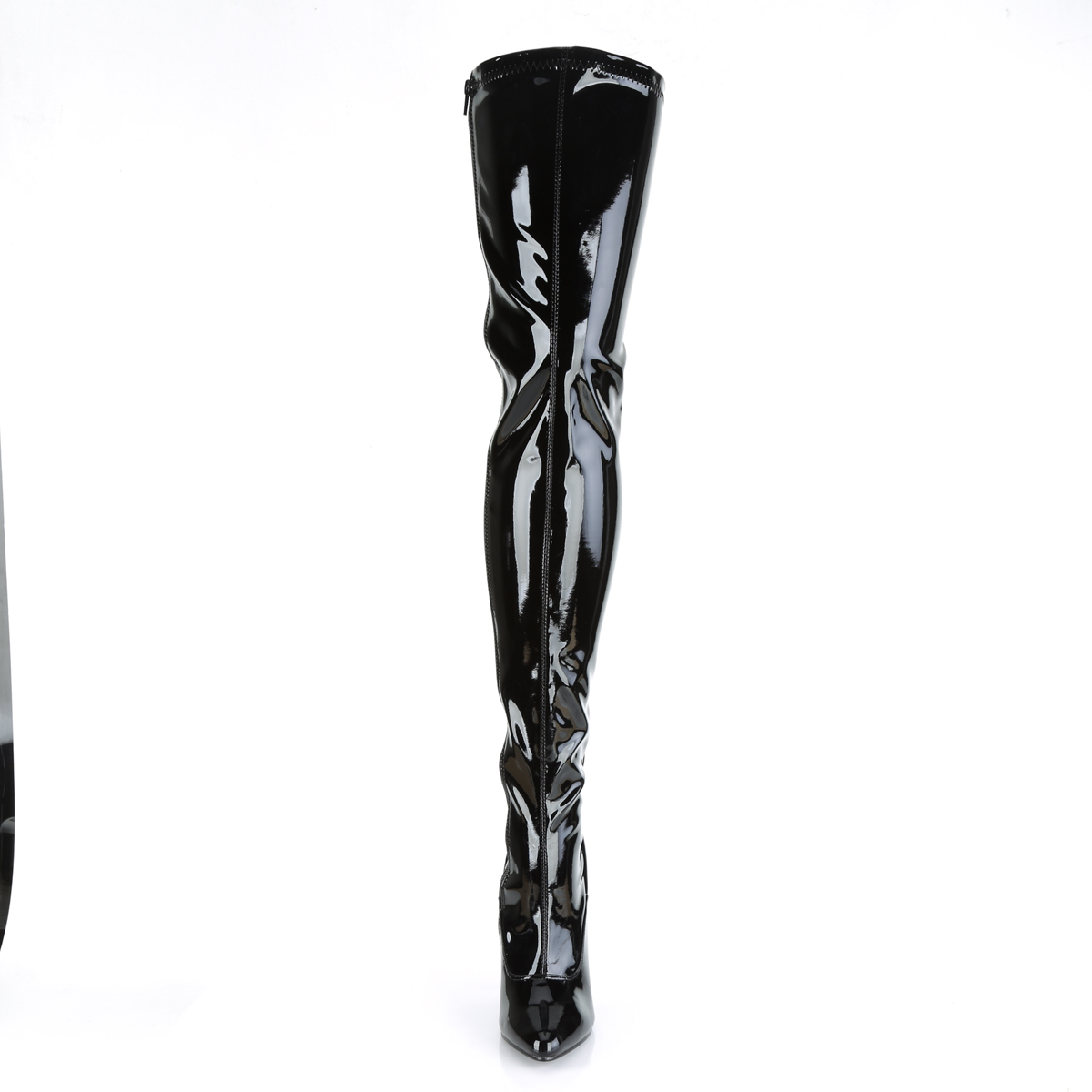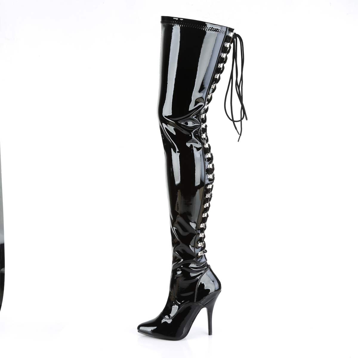 5″” (12.7cm) Heel Open Back D-Ring Stretch Thigh Boot, Full Inner Side Zip Closure