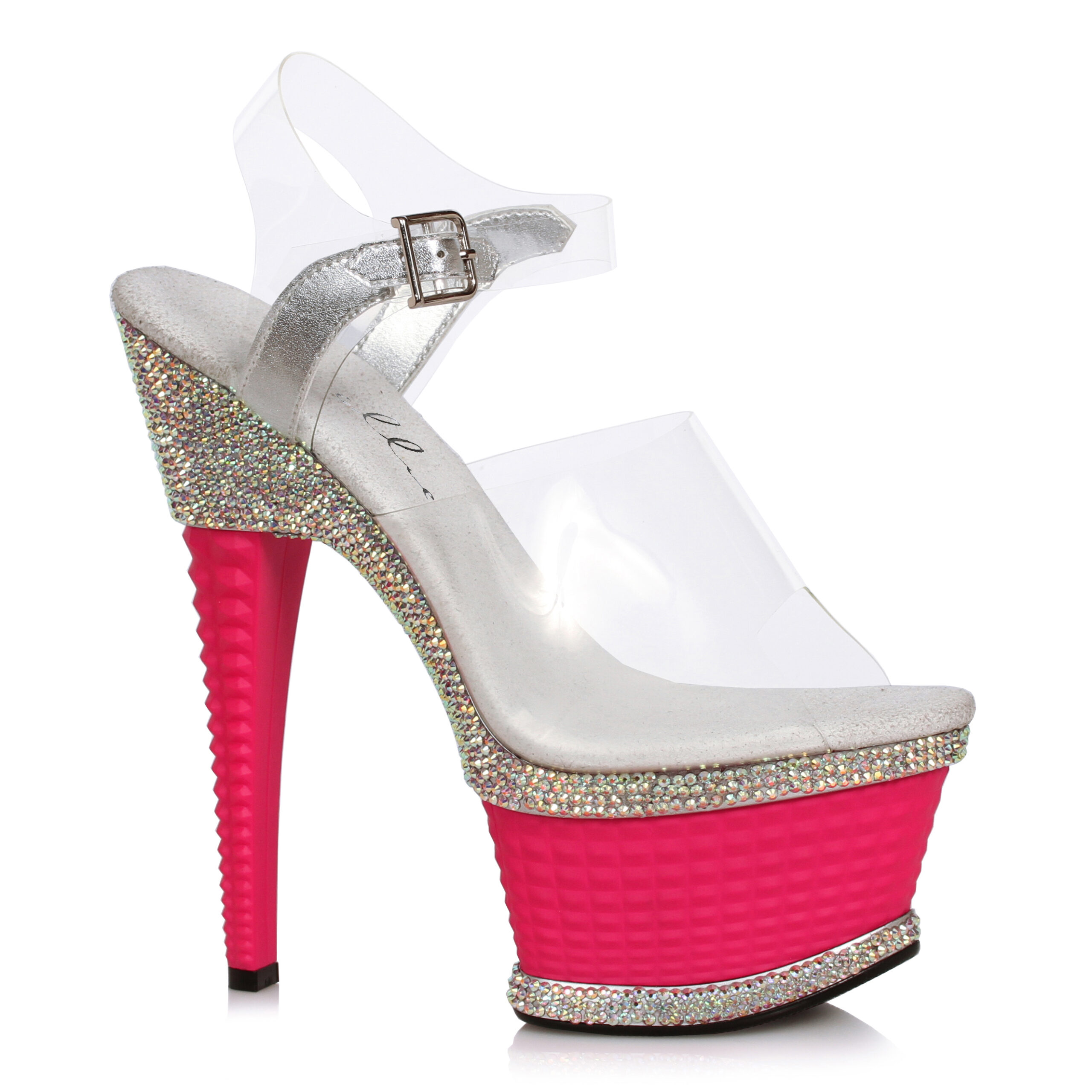 6 Heel W/Textured Platform & Rhinestone Accents
