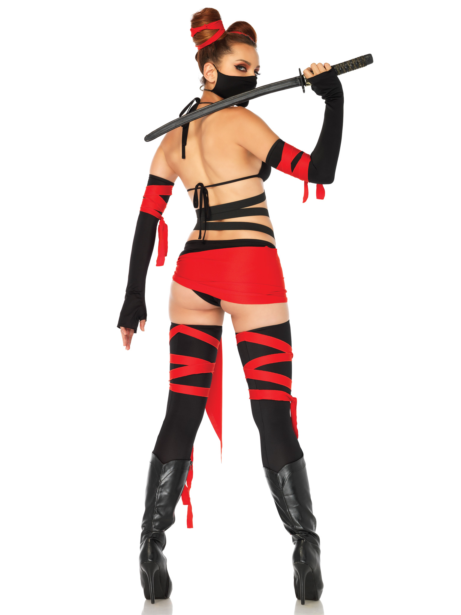 6PC.Killer Ninja, bikini bodysuit, thigh highs, arm warmers, waist sash, hair wraps and face mask. No returns or exchanges.