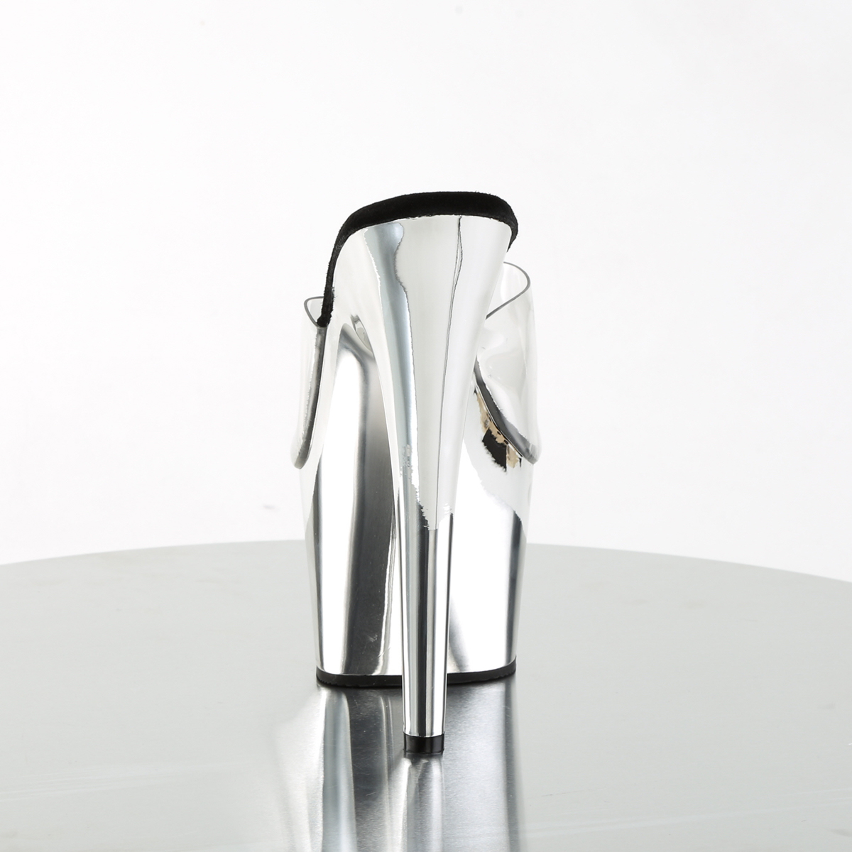 7″” (17.8cm) Stiletto Heel, 2 3/4″” (7cm) Platform Slide with Chrome Plated Bottom