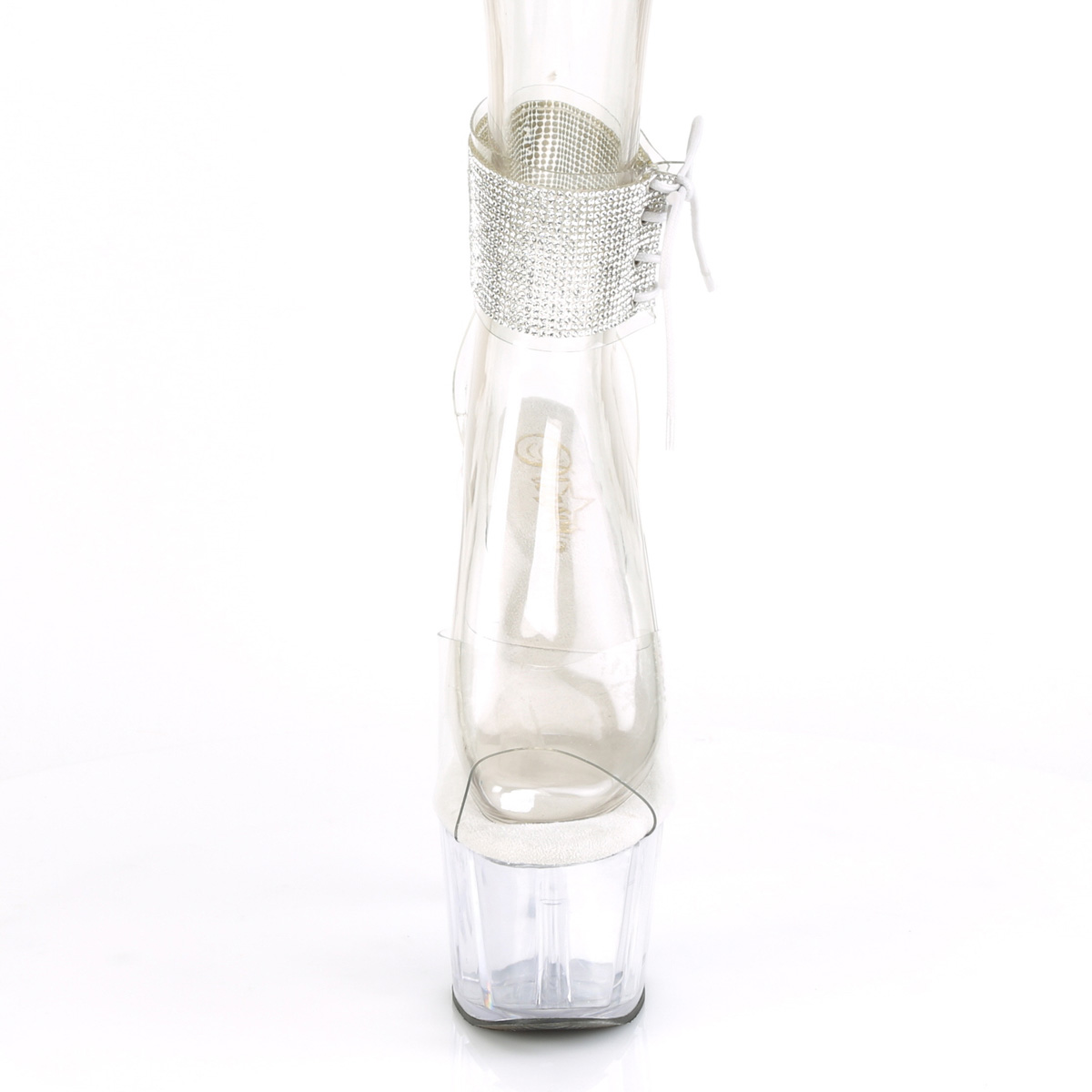 7″” (178mm) Heel, 2 3/4″” (70mm) Platform Rhinestone Embellished Ankle Cuff Sandal w/Side Lacing