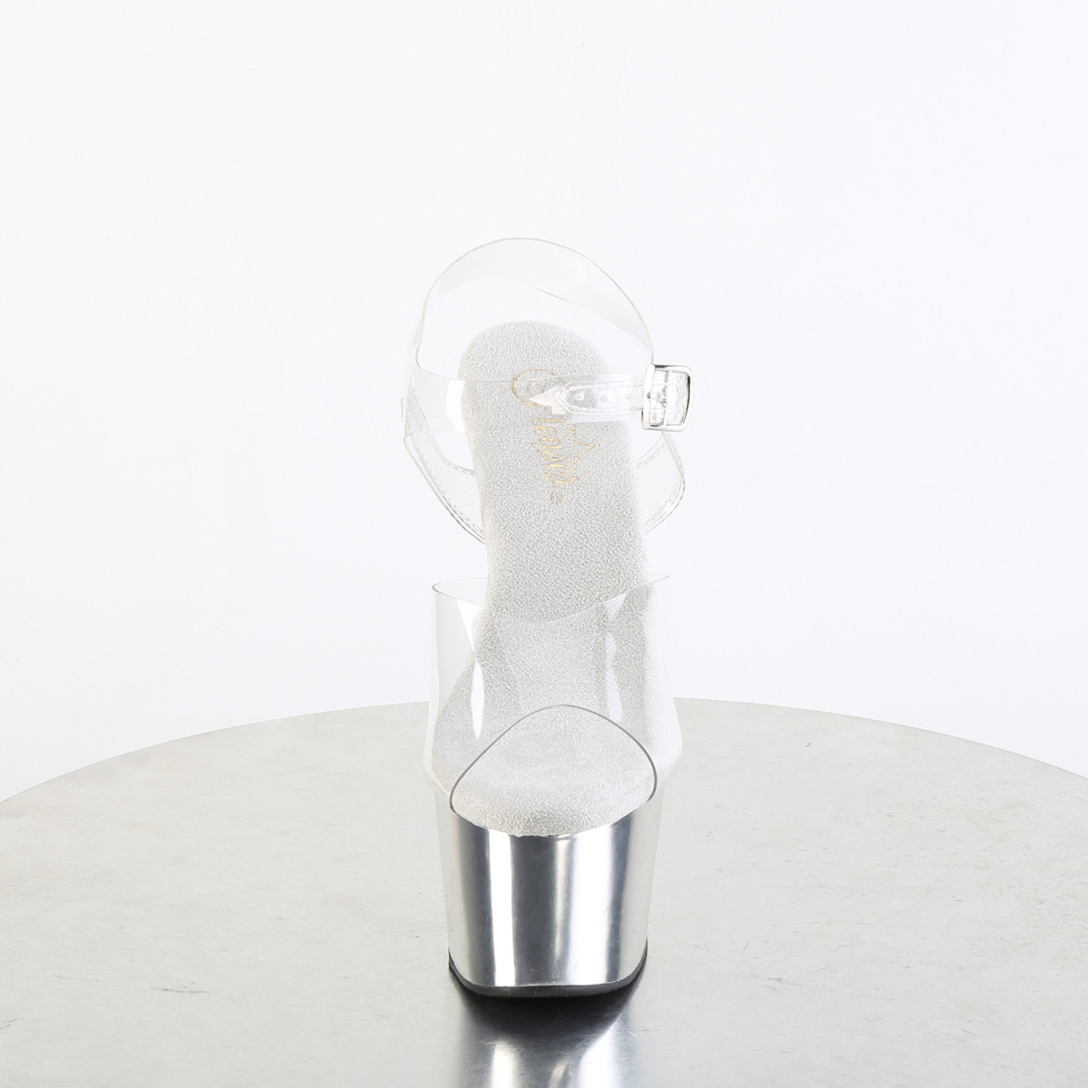 7" Heel, 2 3/4" PF Ankle Strap Sandal w/ Chrome Plated Btm