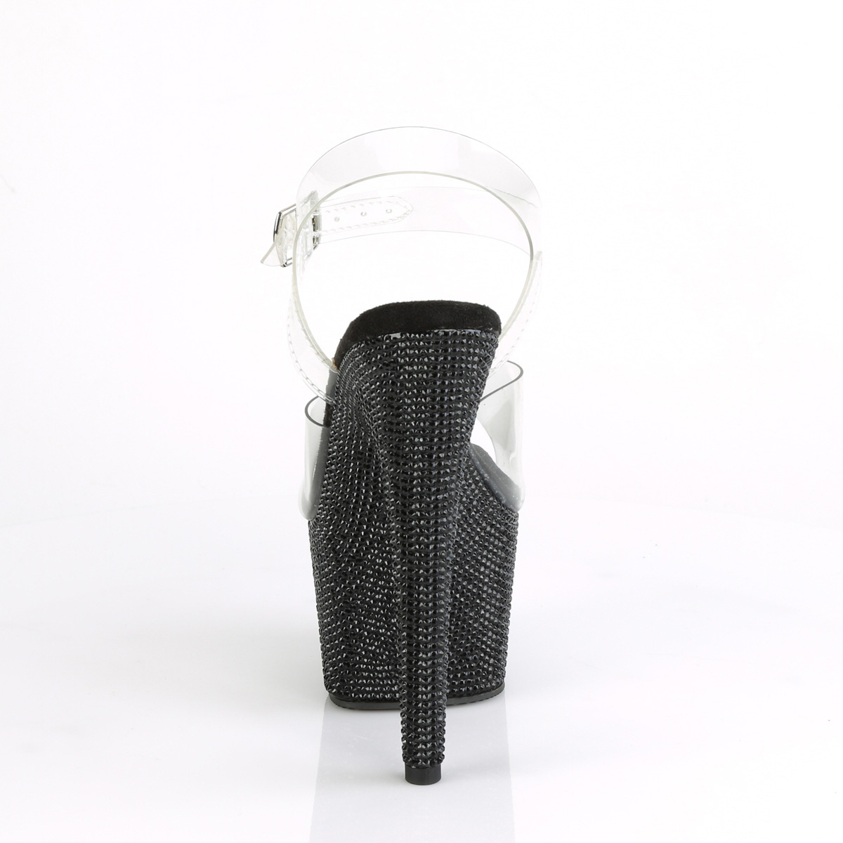 7″” (178mm) Heel, 2 3/4″” (70mm) Platform Ankle Strap Sandal Featuring Rhinestones Encrusted All-Over the Entire Platform Bottom