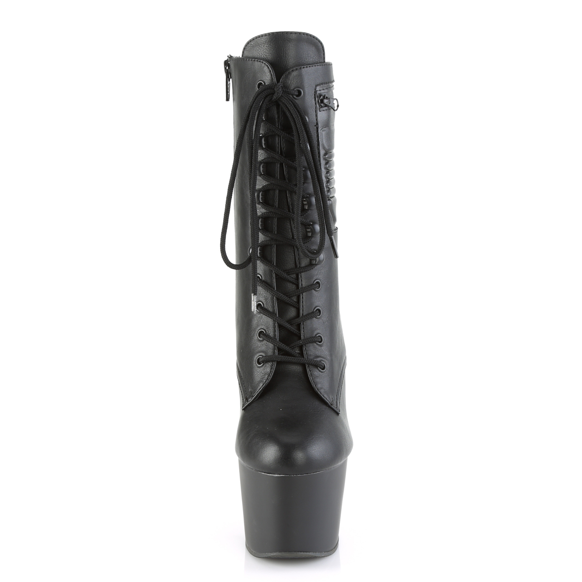 7″” (178mm) Heel, 2 3/4″” (70mm) Platform Lace-Up Front Ankle Boot w/ Outside Zip Closureed Pocket, Full Inner Side Zip Closure