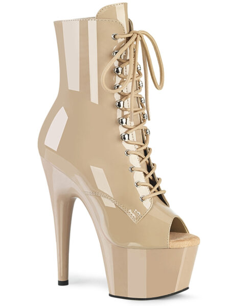 7″” (178mm) Heel, 2 3/4″” (70mm) Platform Peep Toe Lace-Up Front Ankle Boot, Inner Side Zip Closure