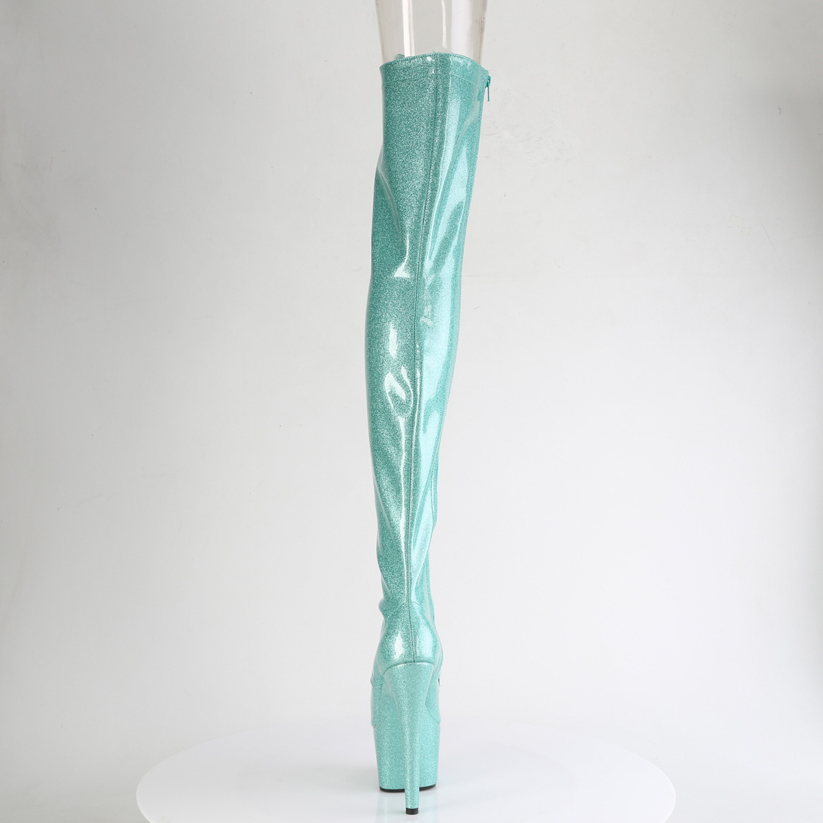 7" Heel, 2 3/4" PF Peep Toe Lace-Up Thigh Boot, Side Zip