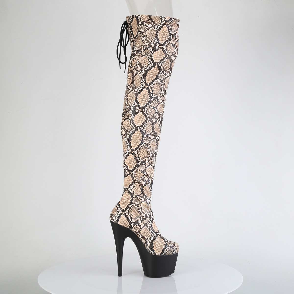 7″” (178mm) Heel, 2 3/4″” (700mm) Stretch Snake Print Pull-On Thigh Boot w/Rear Tie Fastening