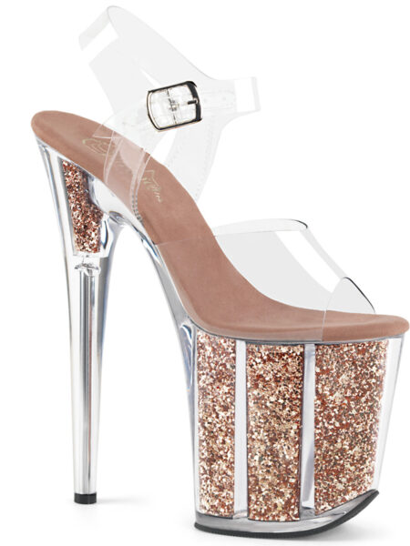 8″” (200mm) Heel, 4″” (100mm) Platform Ankle Strap Sandal w/ Glitter Inserts in the Platform Bottom