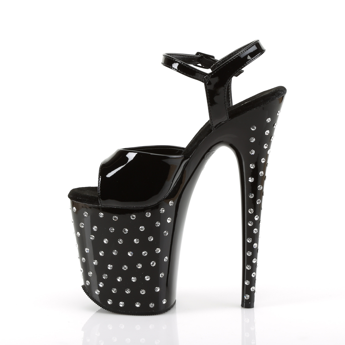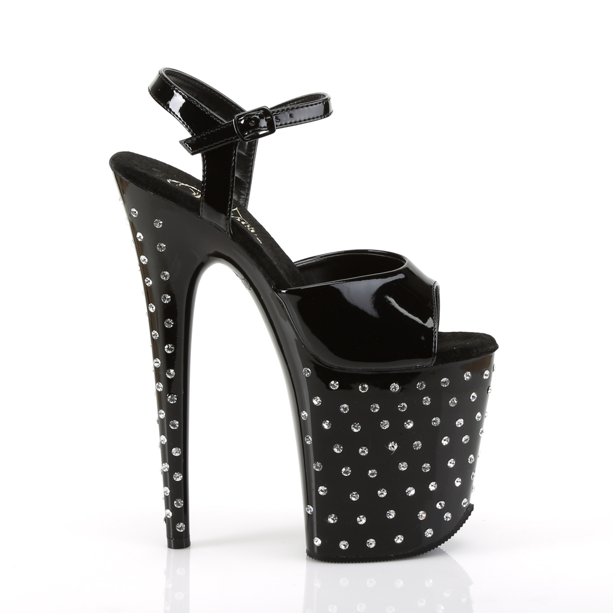 8″” (20.3cm) Heel, 4″” (10.2cm) Platform Ankle Strap Sandal Featuring Rhinestone Studded Platform