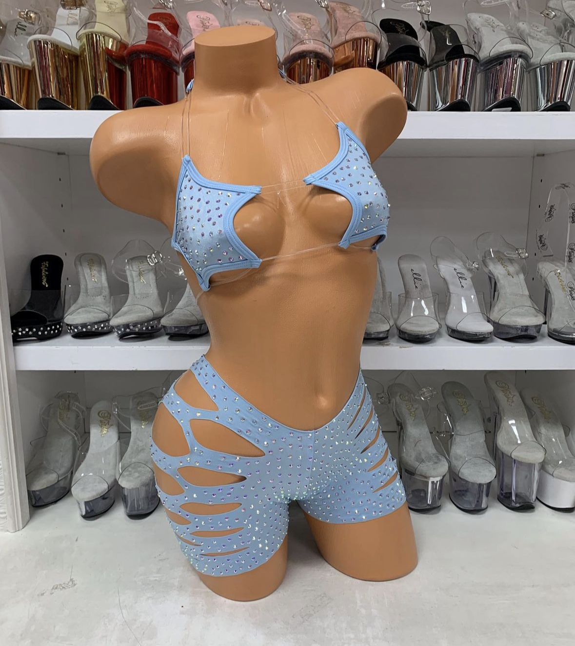 Starlight Rhinestone Cut-Out Set - Baby Blue Two Piece Outfit