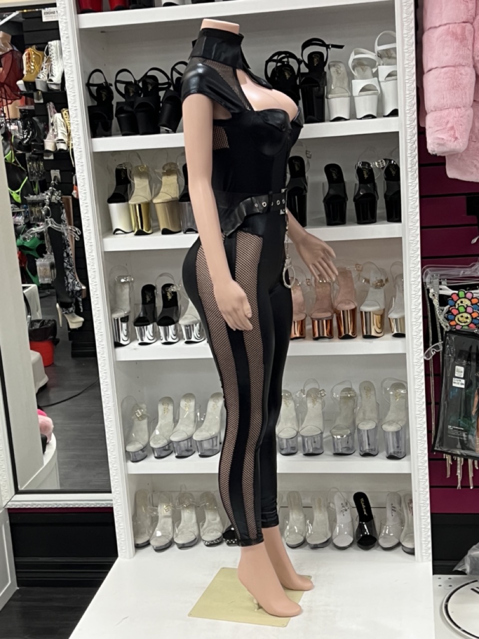 This complete motorcycle officer costume includes a form-fitting black catsuit with mesh panels, professional police hat with badge, structured collar, tactical belt, sleek black gloves, and regulation handcuffs. Every authentic detail works together to create the ultimate highway patrol fantasy that combines law enforcement authority with irresistible commanding appeal. No returns/exchanges.