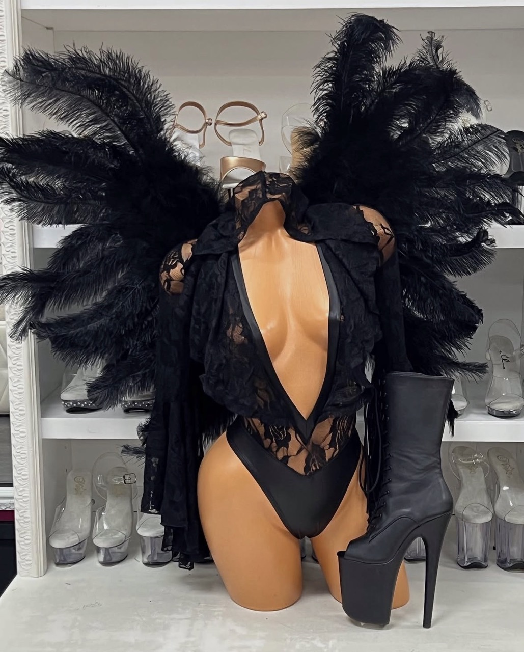 Step into the spotlight with Dark Angels Lust, a gothic-inspired mesh bodysuit that brings elegance, confidence, and dark fantasy together in one unforgettable look. Whether you’re performing on stage, heading to a costume party, or dressing for a themed shoot, this piece ensures you’re the center of attention.