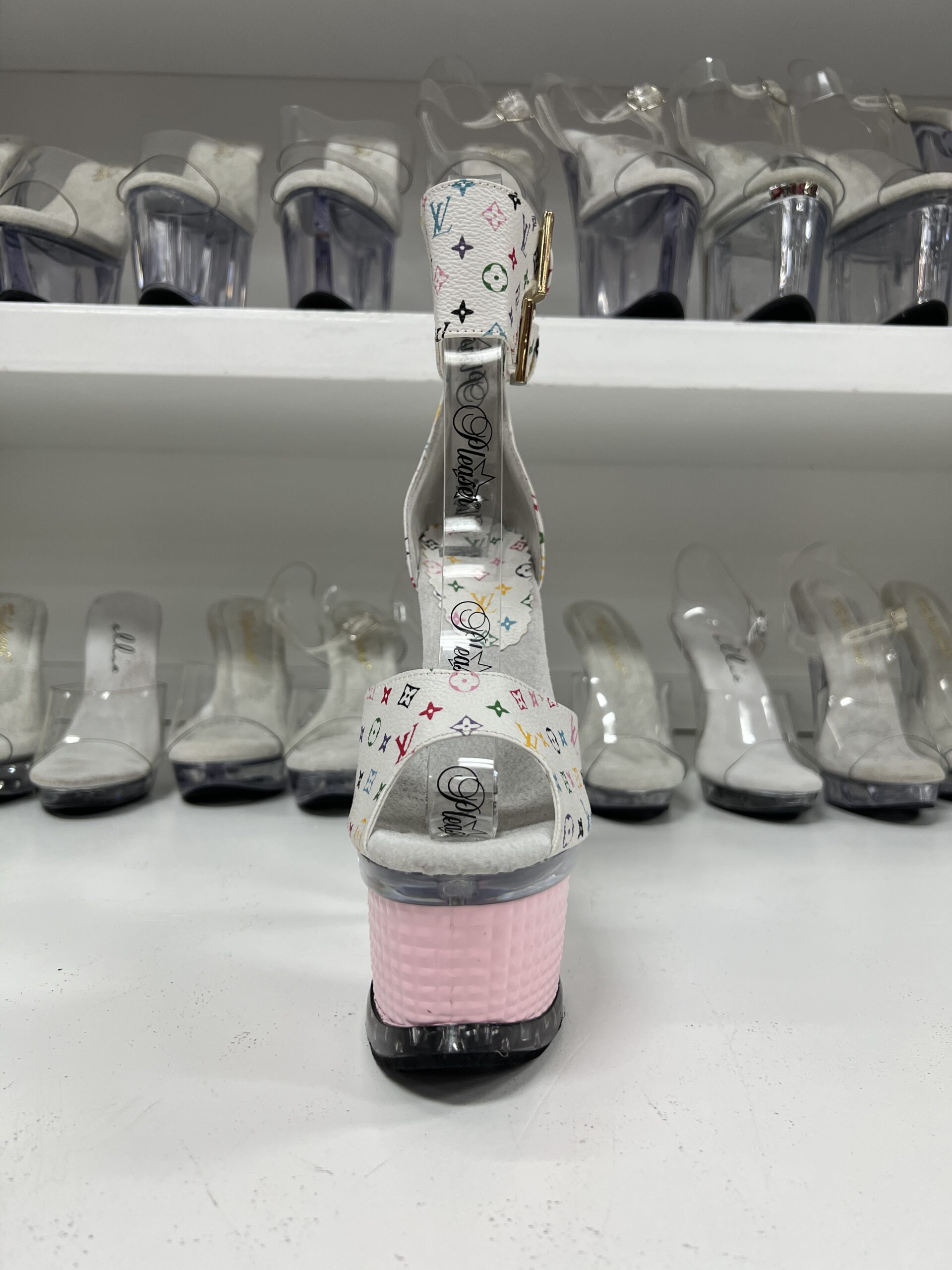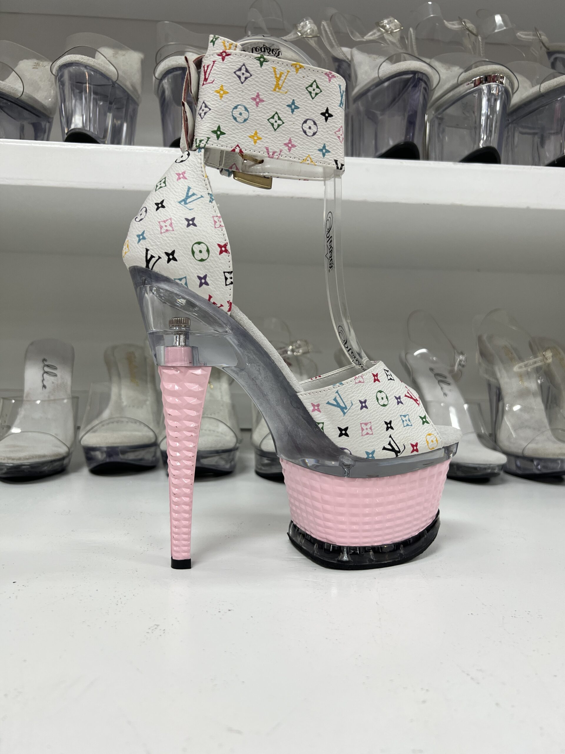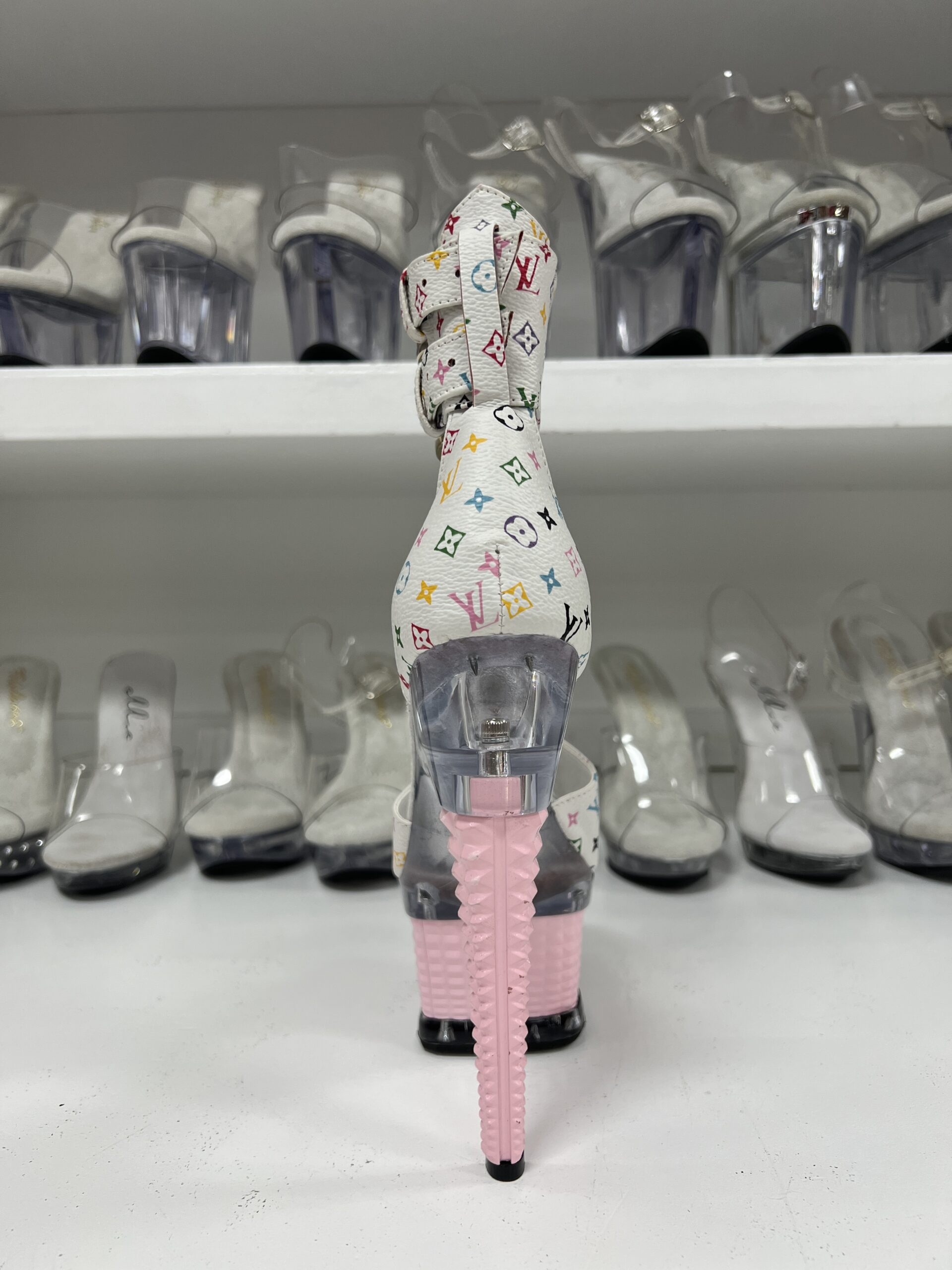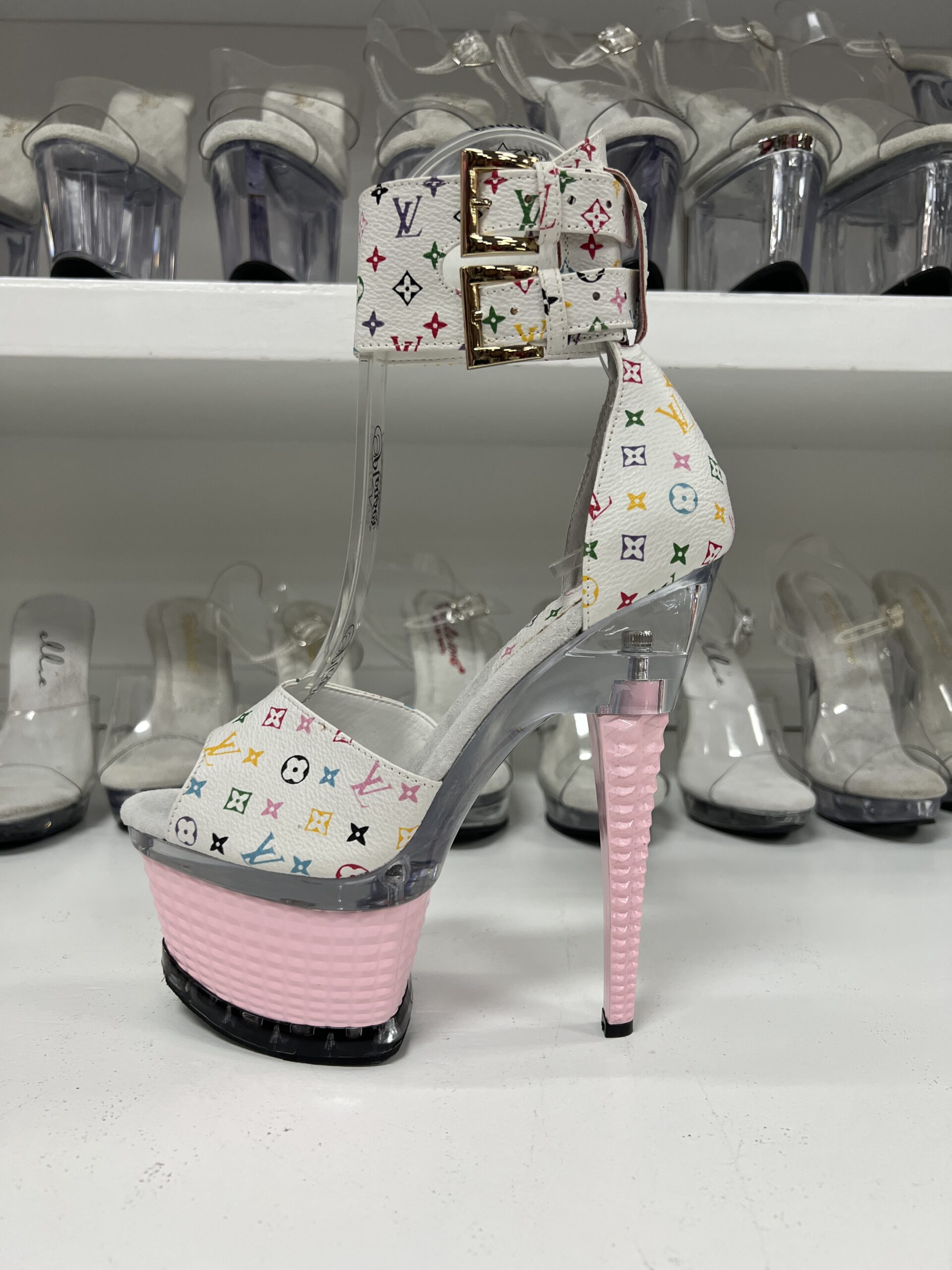 Inspired White Rainbow LV Ankle Strap 7" Stiletto