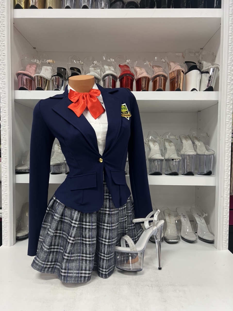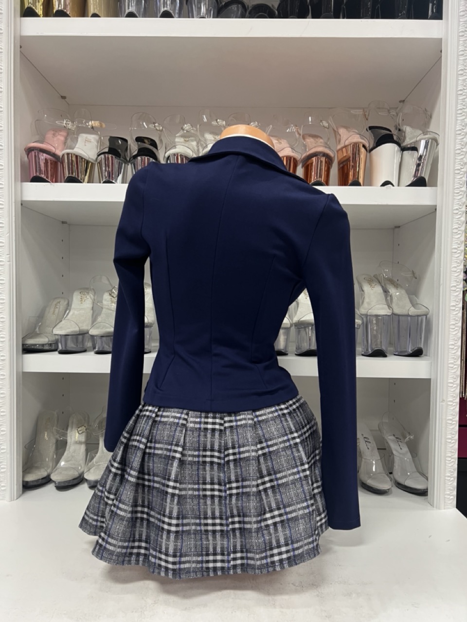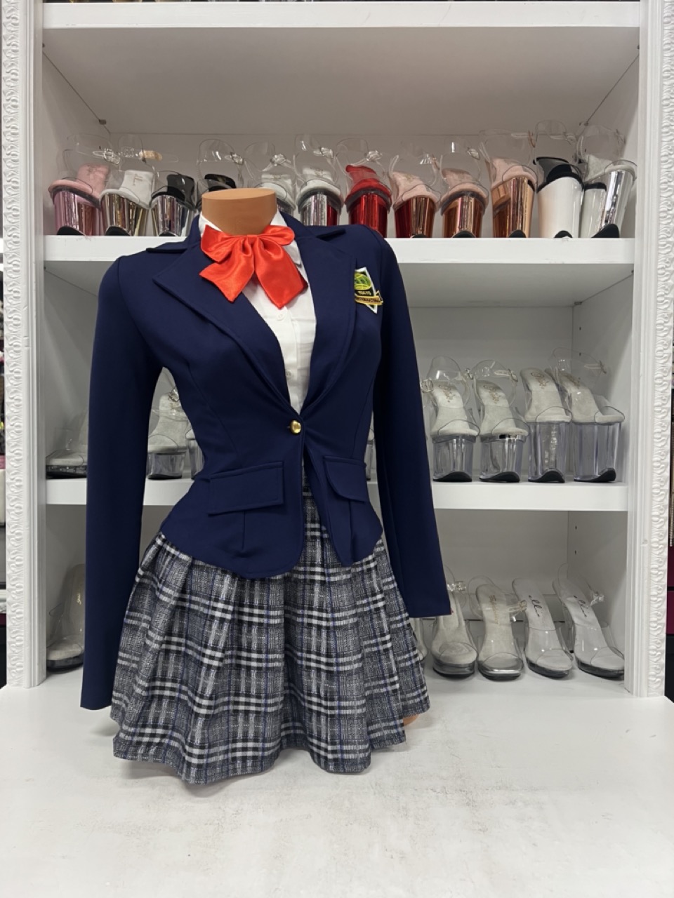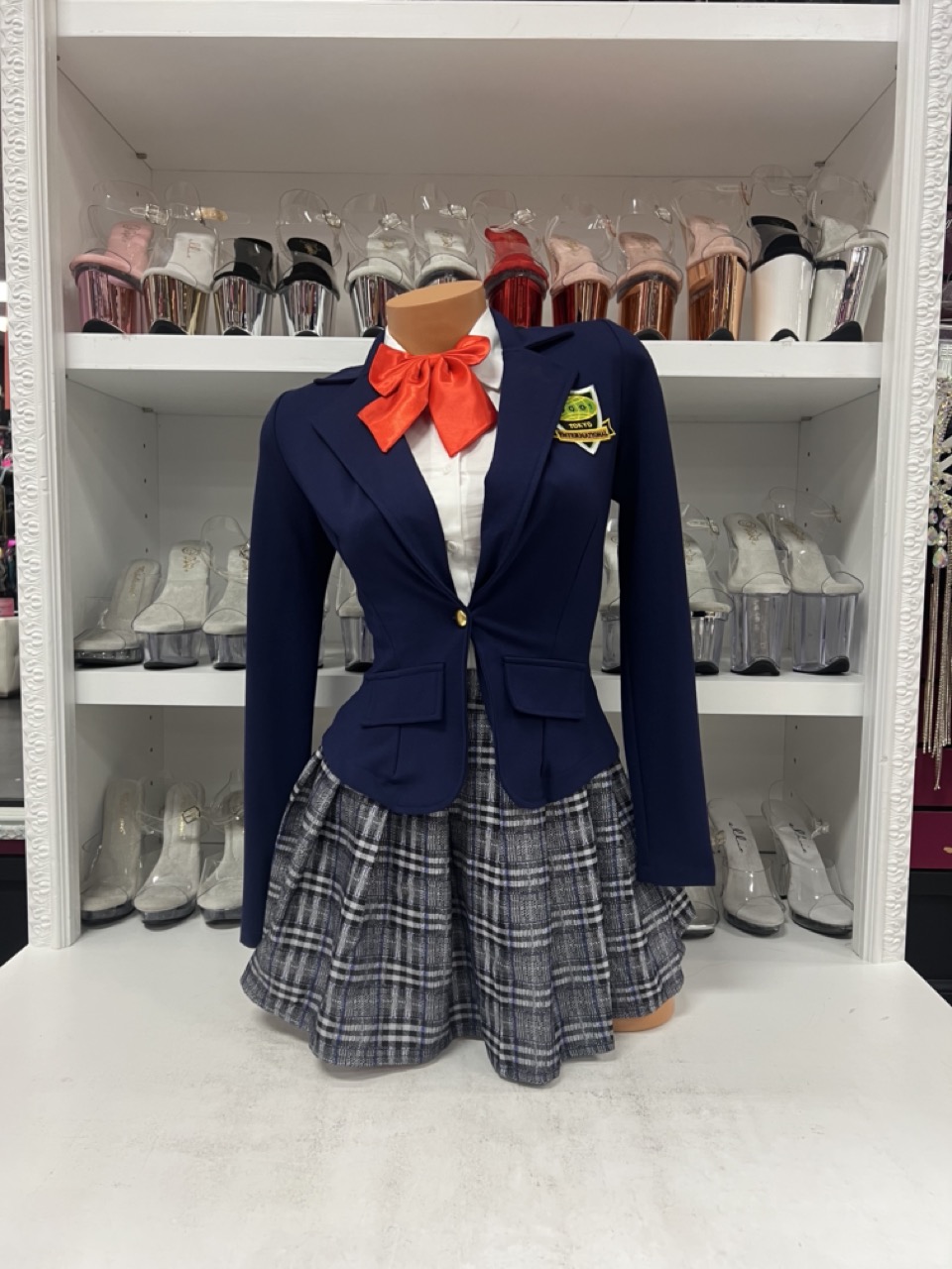Kill Bill inspired navy blazer plaid skirt school girl costume with accessories