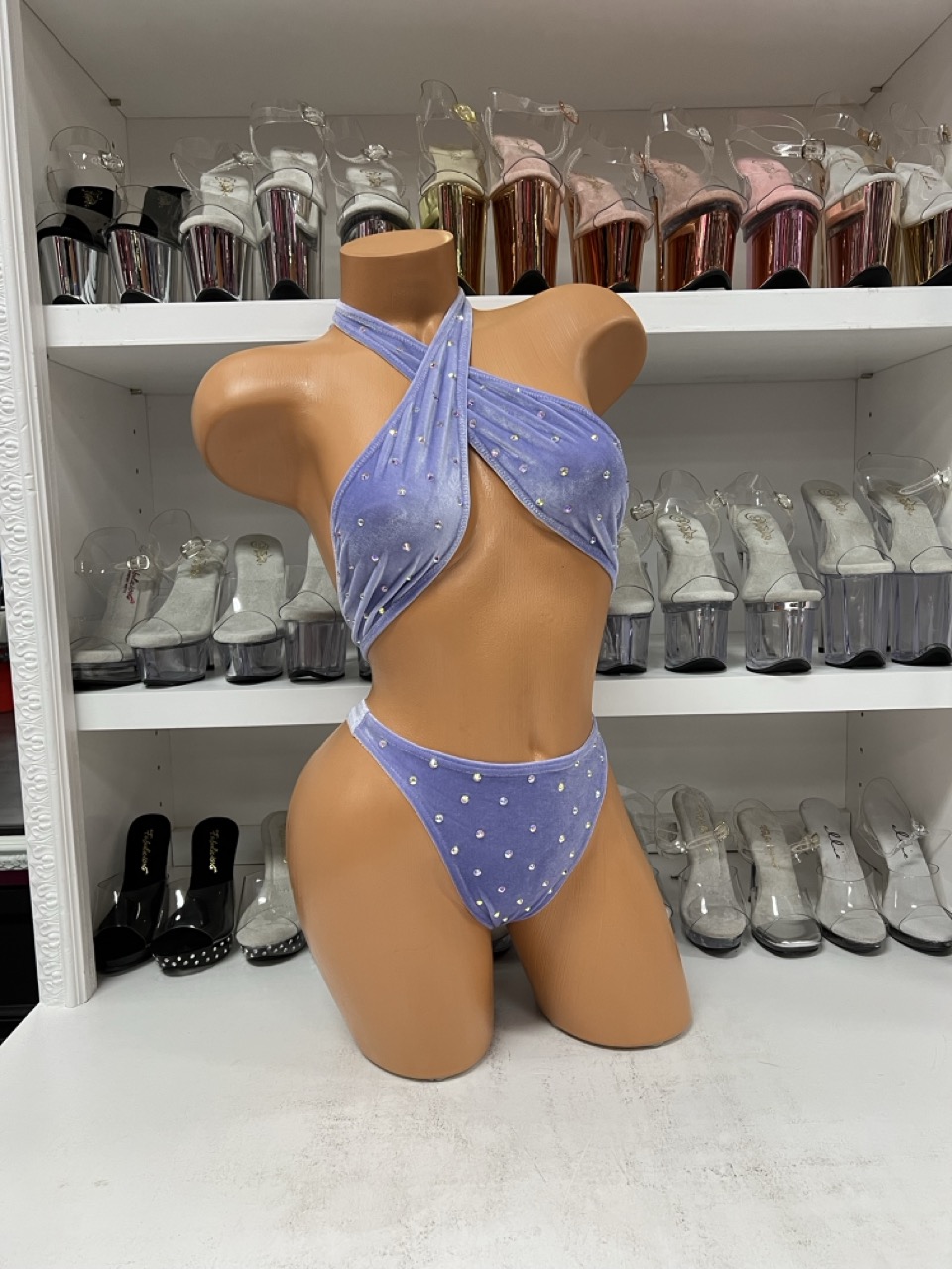 Lavender Velvet Two Piece Short Set with Rhinestones