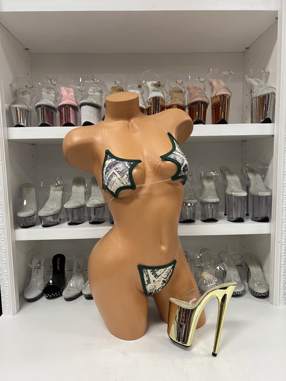 Pattern Rhinestone Star Set with Thong