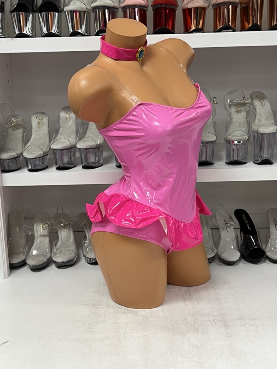 This complete peachy princess costume includes a pink skirted teddy with ruffled details, elegant neckpiece, sparkling golden crown, pristine white gloves, and whimsical mushroom purse. Every royal detail works together to create the ultimate gaming princess fantasy that combines beloved character charm with irresistible seductive appeal. No returns/exchanges.