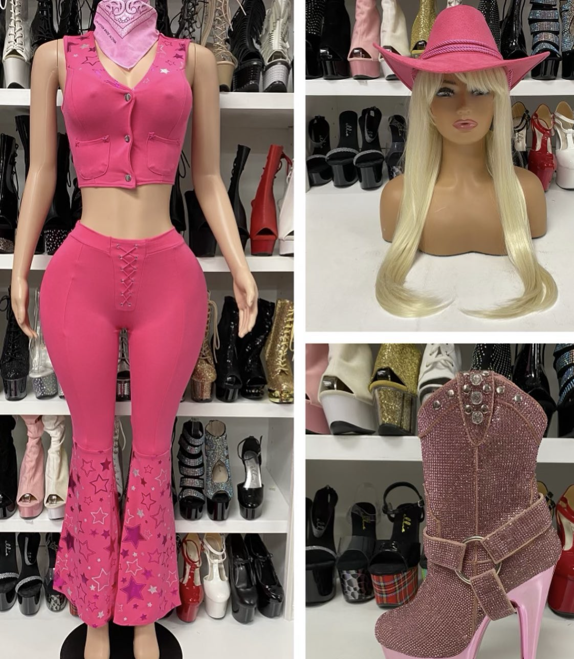 This set includes the vest, star-print pants, and bandana — giving you the perfect foundation for your cowgirl-inspired look. However, you can elevate it further with rhinestone-studded boots, a pink cowboy hat, and bold makeup. Moreover, adding glittery jewelry or a fringe jacket takes it to the next level.