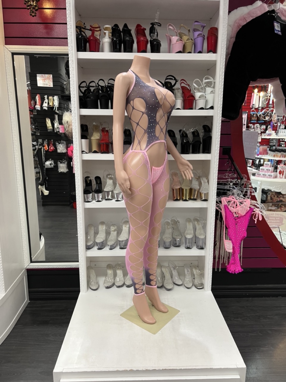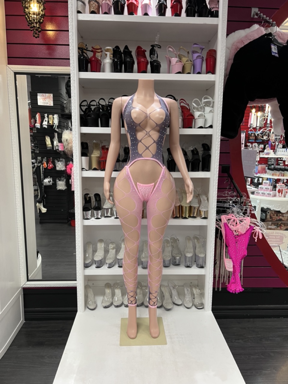 This pink gray bodystocking features a soft color combination with full coverage design and adjustable lace-up front detail. The sophisticated pink and gray blend creates elegant appeal with comfortable flexibility. Crafted from premium stretch fabric for dance performance, this versatile piece transitions effortlessly from stage work to refined styling occasions.