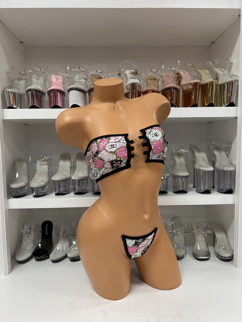 Pink Multi Colored Inspired Rhinestone Tube Top Two Piece