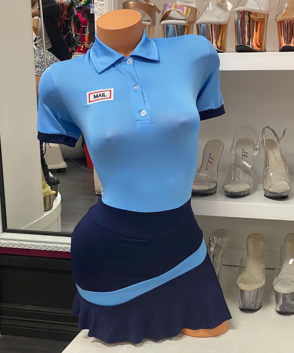 Postal Honey polo dress with contrast accents. Includes dress, mail bag, and hat. No returns or exchanges.