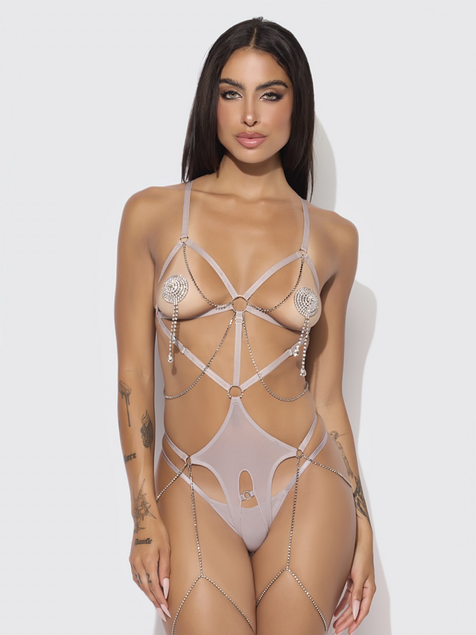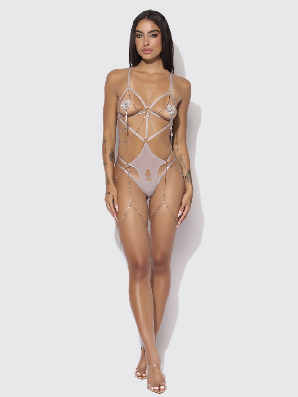 Presley Shine Mesh Open Cup & Crotchless Rhinestone Teddy
