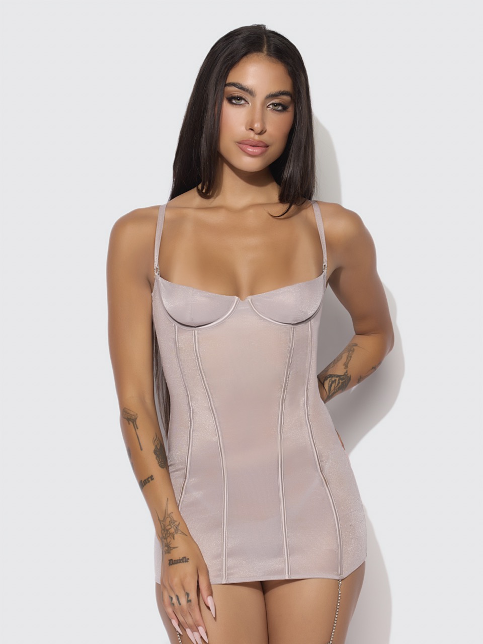 Presley Shine Mesh & Rhinestone Chemise & G-String Set