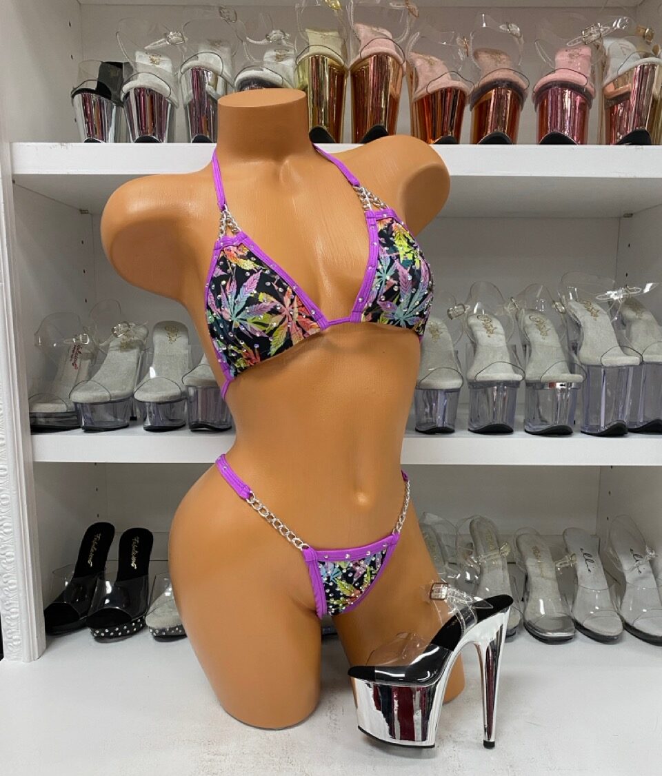 Purple Weed Bikini Set with Chains