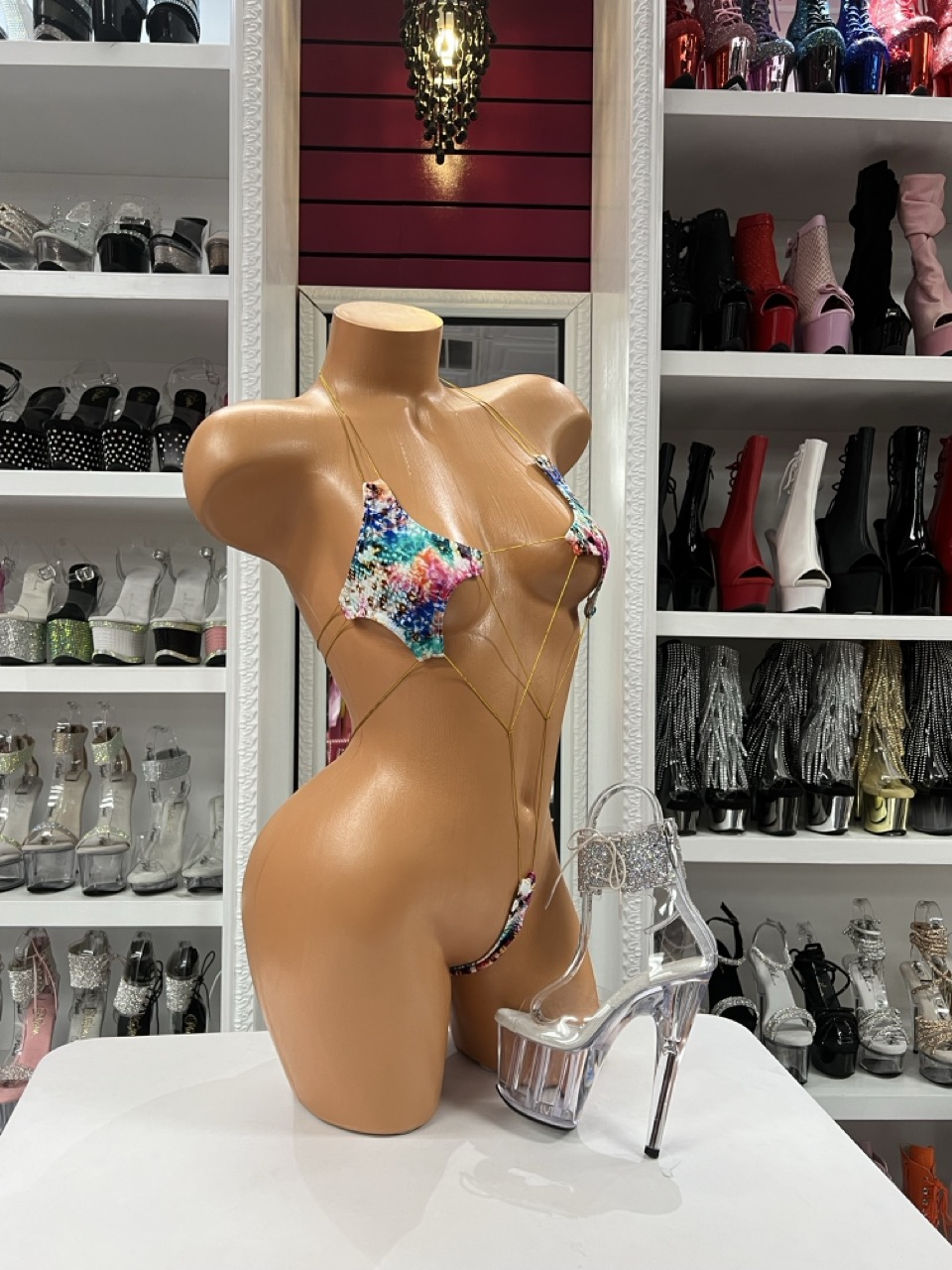 Rainbow snake micro romper with bold strappy minimal design. Vibrant, edgy, and made to stand out.