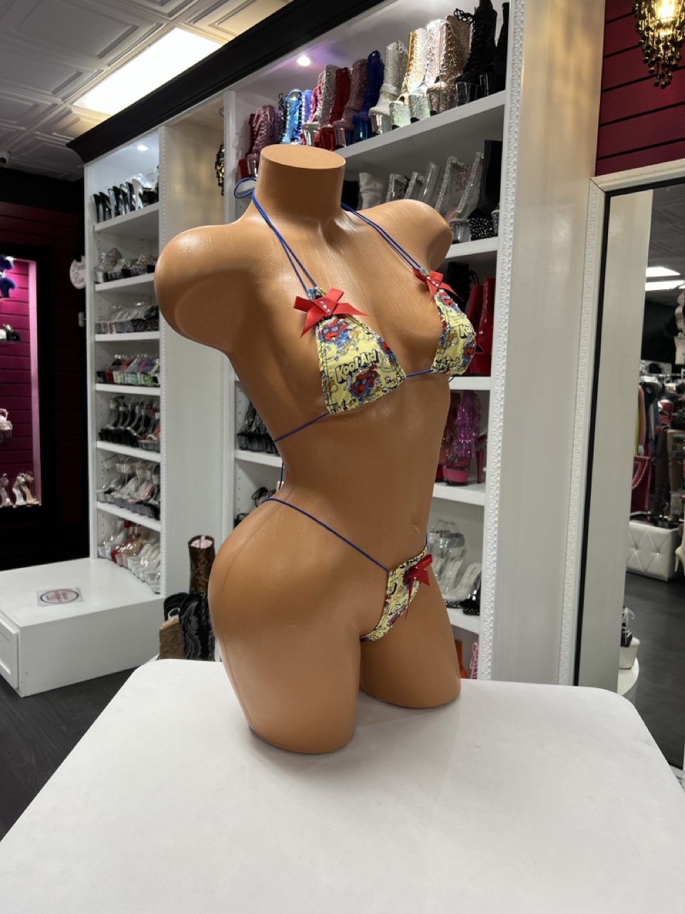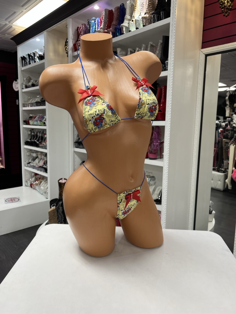 Retro Pop Graphic Bikini features a colorful print, adjustable ties, and a micro fit for a bold and playful look.