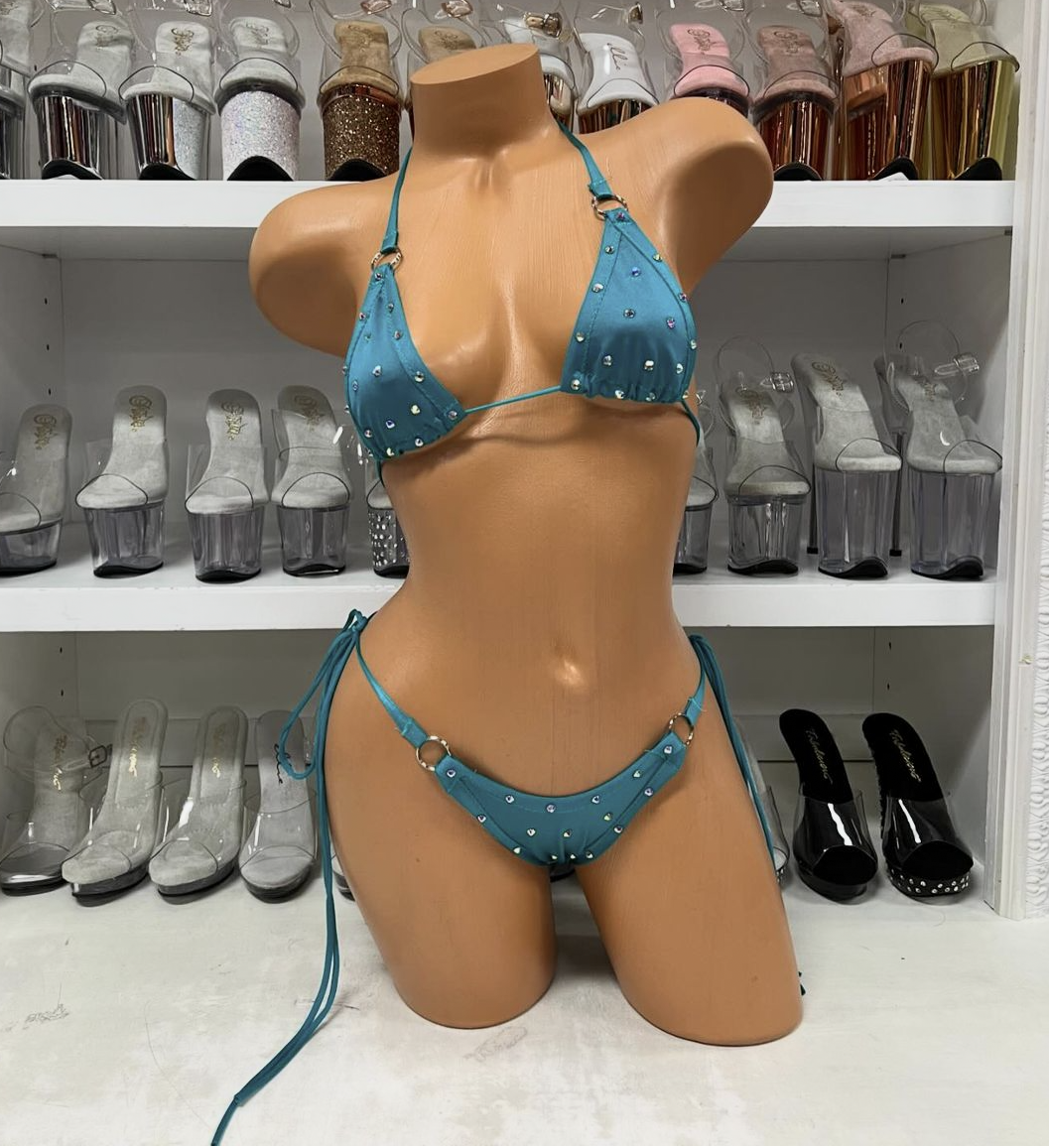 Rhinestone Tie Side Bikini