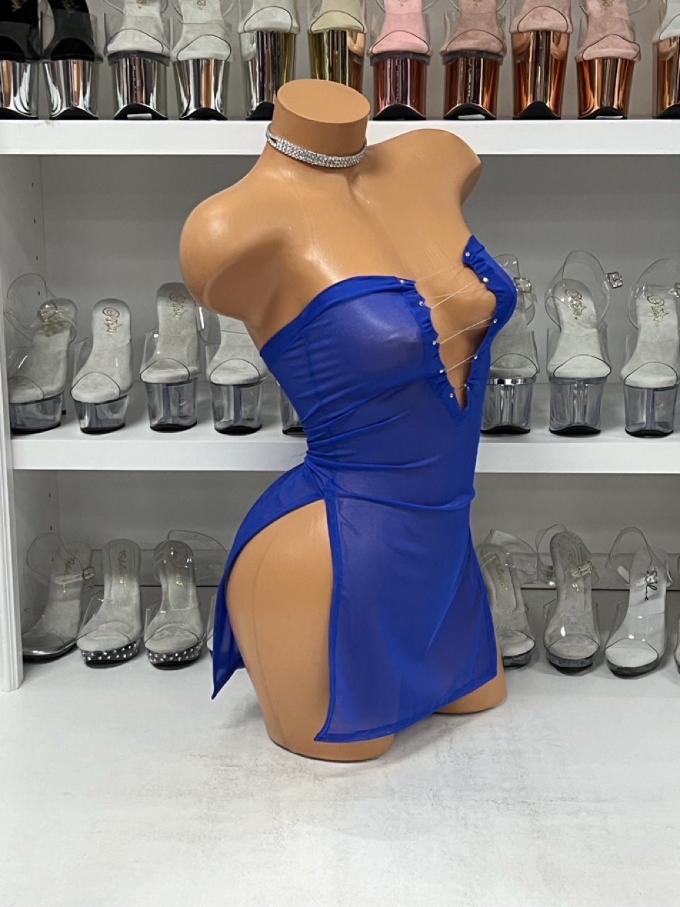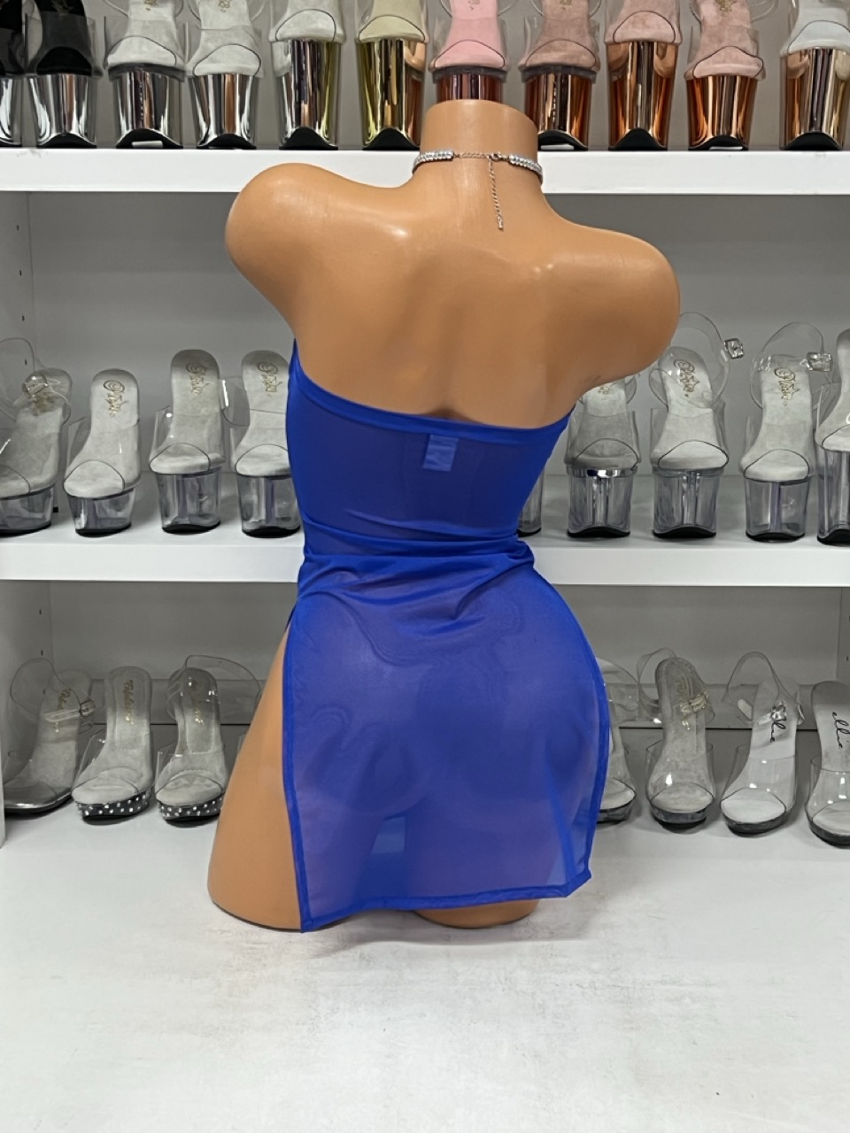 Because the royal blue mesh mini dress is daring, flattering, and packed with sparkle, it’s the perfect piece for anyone who loves to perform, pose, and stand out.
