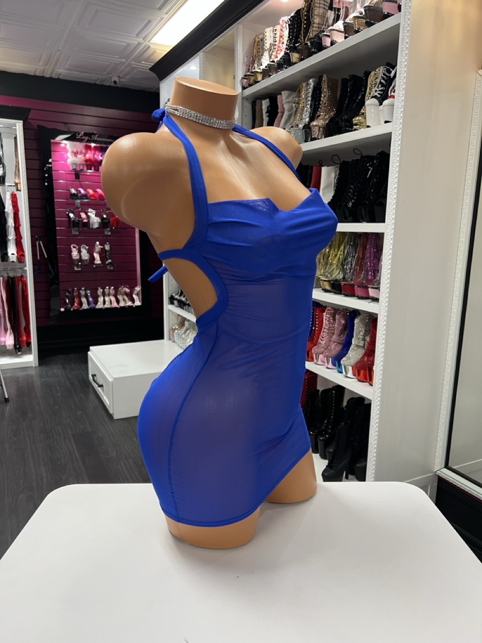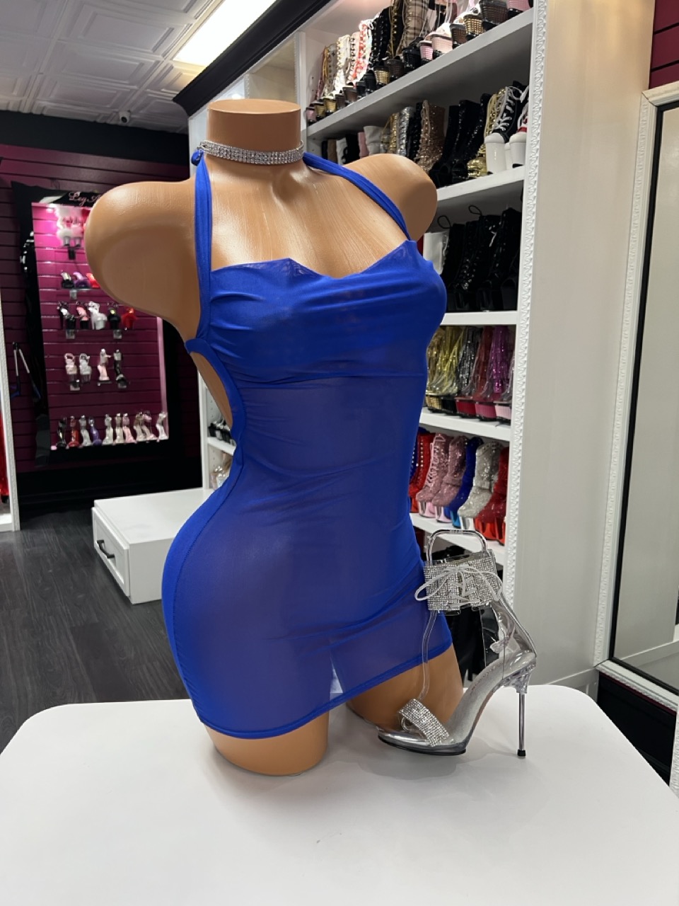 Blue sheer dancewear brings an electric pop of color and body-hugging confidence to any stage, spotlight, or content shoot. This royal blue mini dress is crafted from soft, breathable mesh that contours to your curves while letting your movement and style shine through. Whether you’re setting the vibe at the club or lighting up your feed, this piece is the definition of bold.
