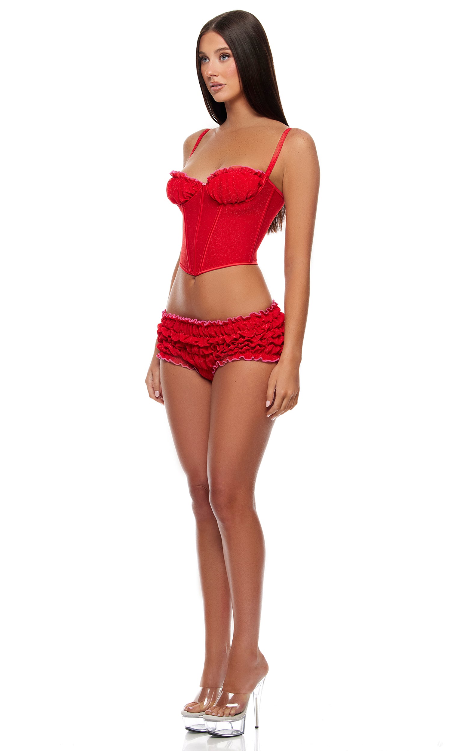 Shimmer Nights Ruched Bustier Lingerie Set – Red Pink