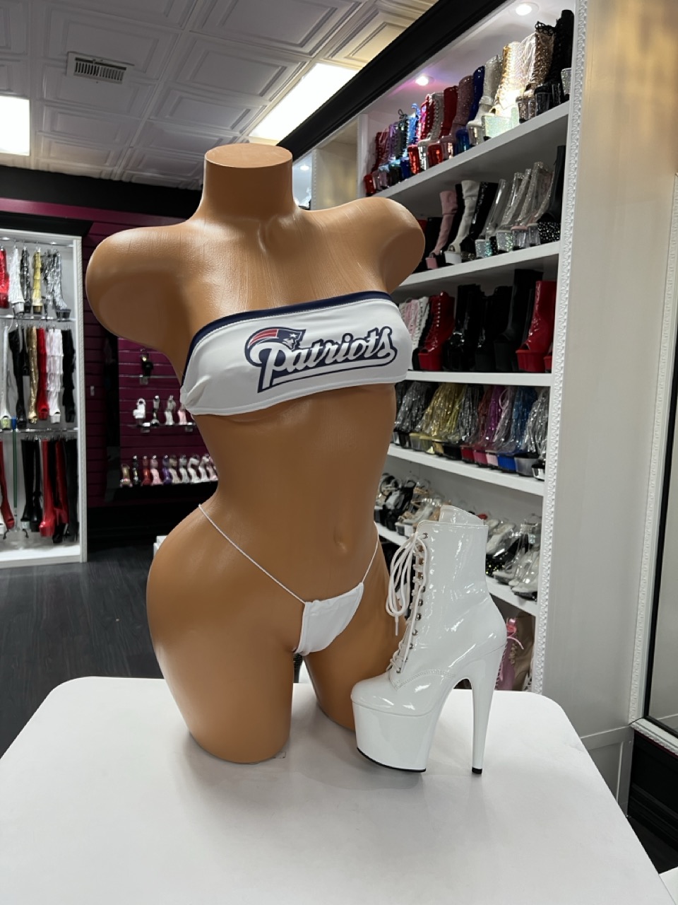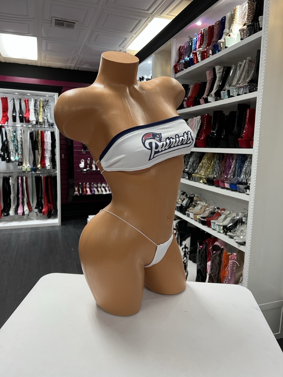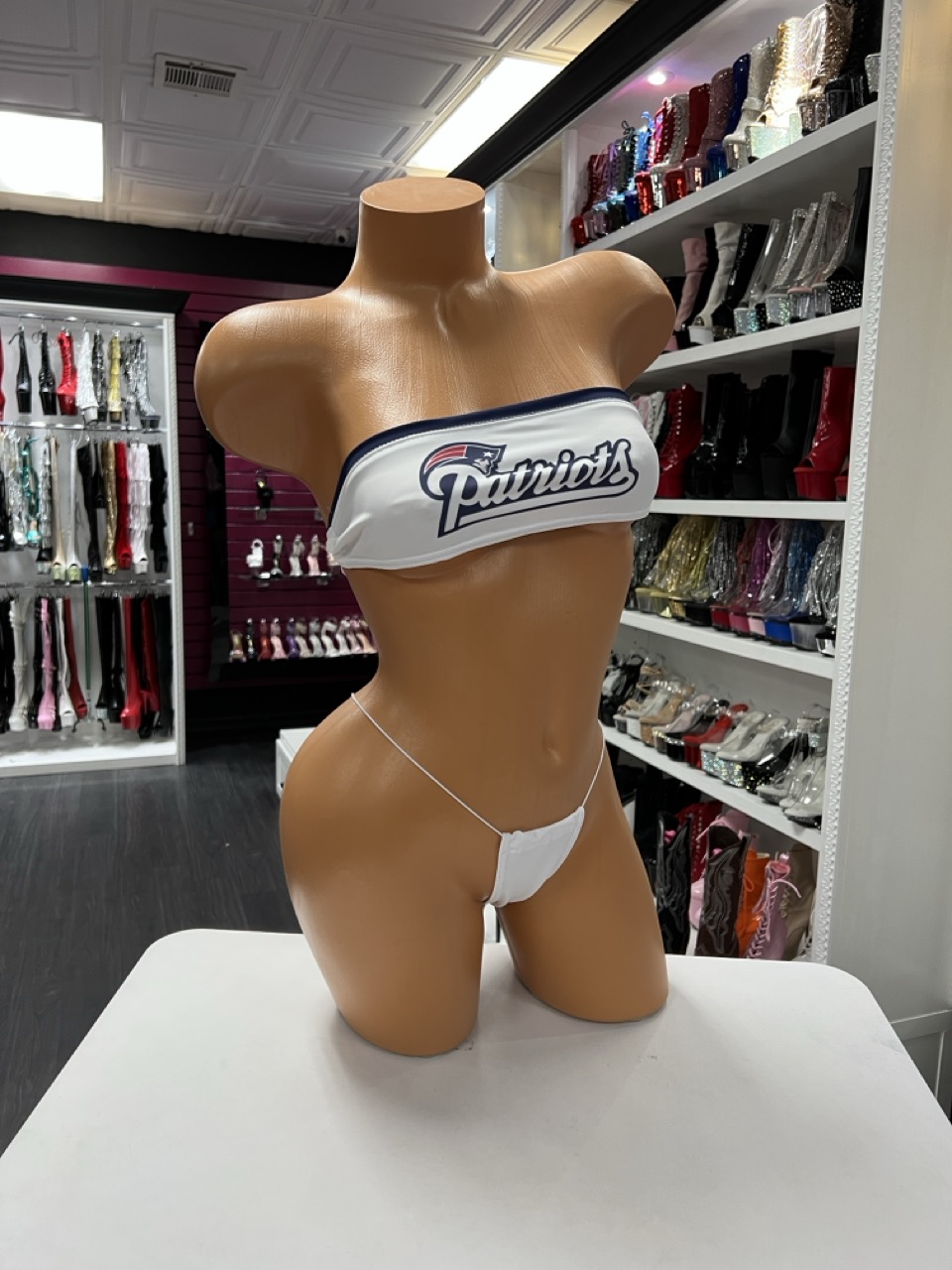 A sporty-inspired two piece micro lingerie set featuring a strapless bandeau top and matching thong. Clean, bold, and performance-ready.