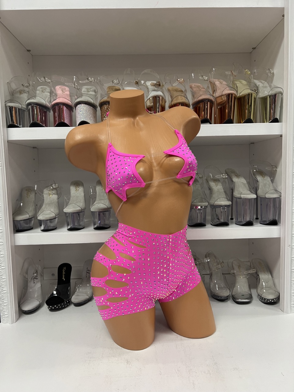 Starlight Rhinestone Cut-Out Set - Hot Pink Two Piece Outfit