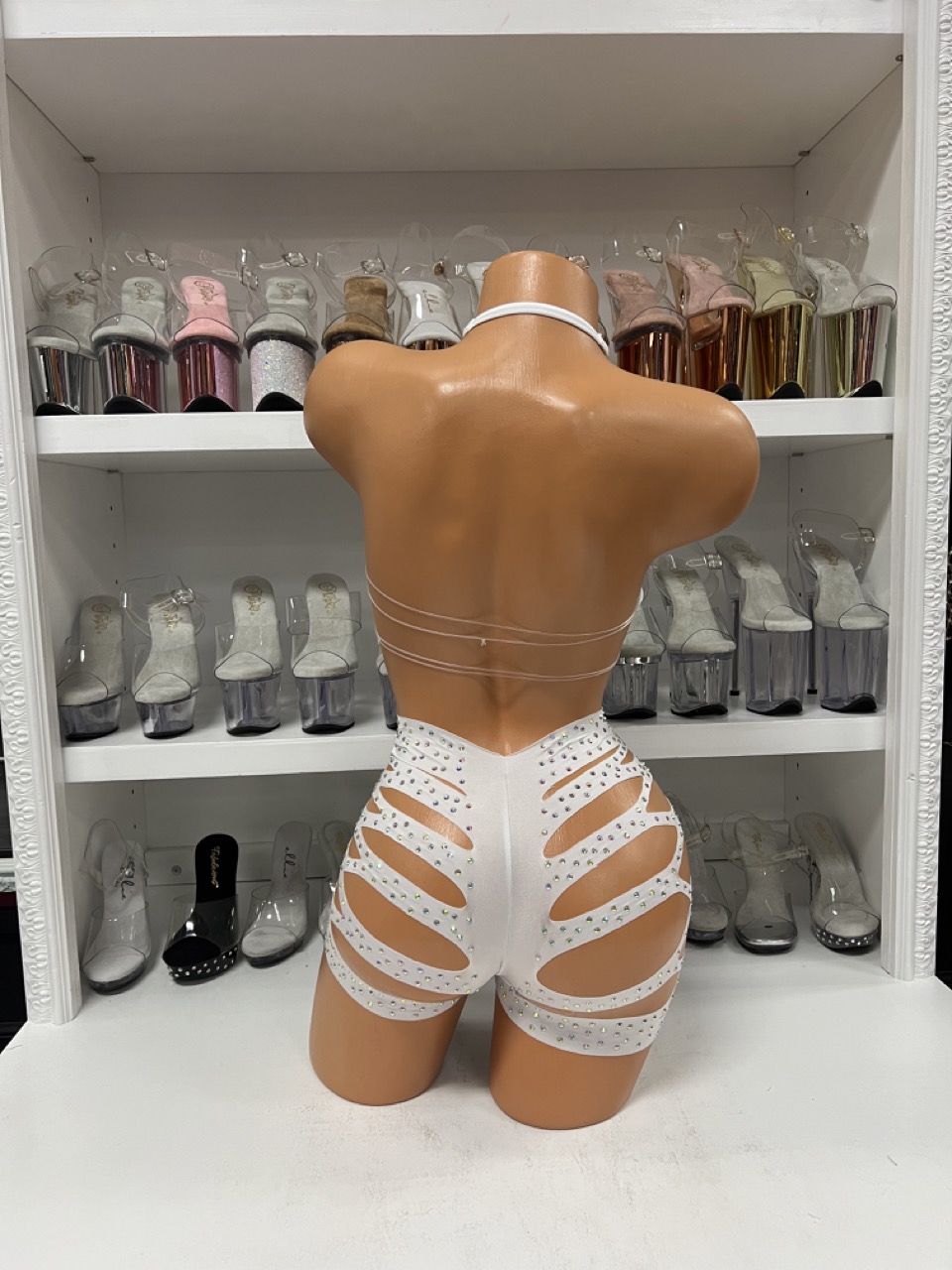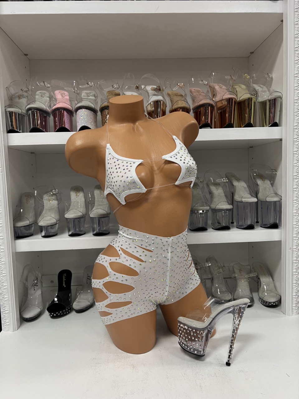 Starlight Rhinestone Cut-Out Set - White Two Piece Outfit