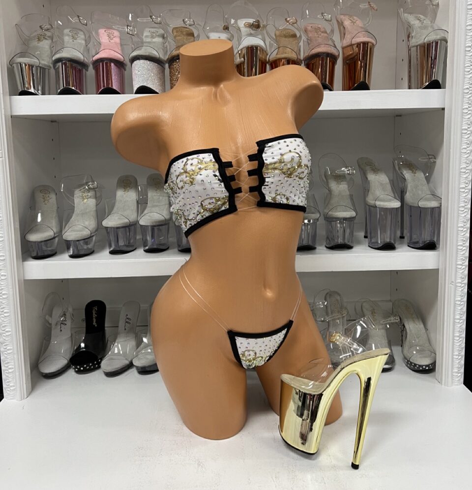 White/Gold and Black Inspired Rhinestone Tube Top Two Piece