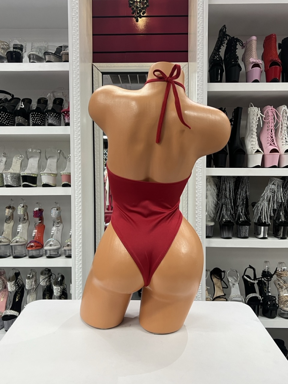 Red XO heart halter rhinestone bodysuit