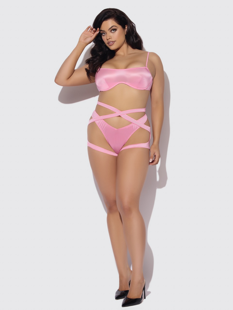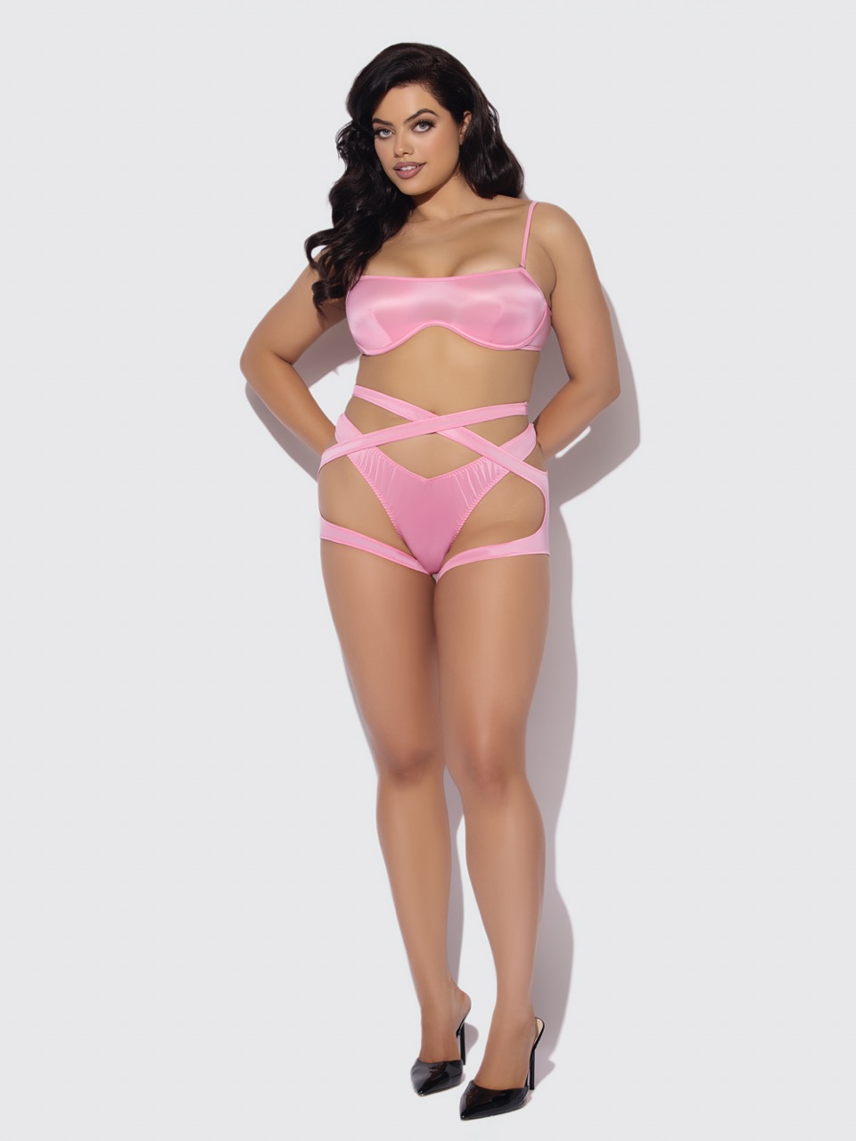 Zoe Oil Slick Bandeau Bra, Wrap Garter & Tanga Set